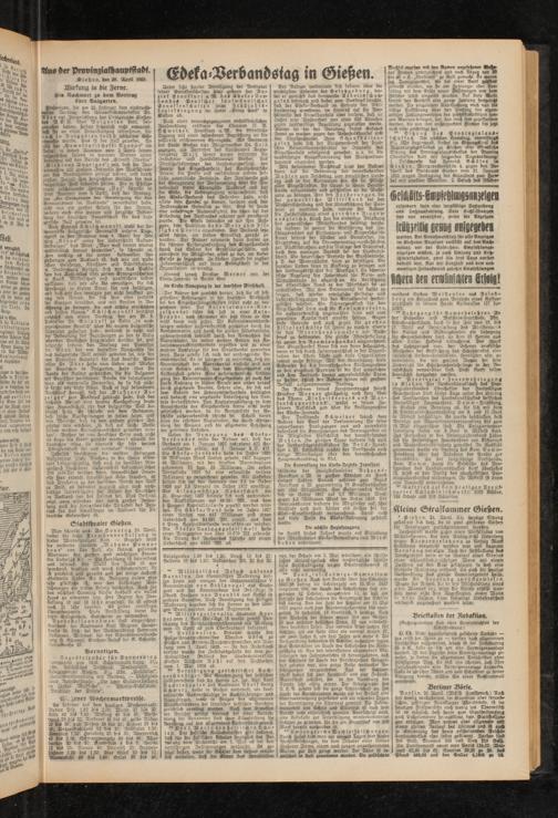 ” Sitzung des Provtnziolous* s ch u I s e s. Am nächsten Samstag, vormittags 8‘7i Uhr beginnend findet im Sitzungssaal des Regierungsgebäubes zu Gießen «ne bft.ittiich« Sitzung des Prvvinzioiauslchulles der Provinz Oberhessen statt mit folgender T aesorkmung: 1. Beschwerde des Heinrich Schäfer m Gießen. WargavrthenhLtte 4. gegen den Be-