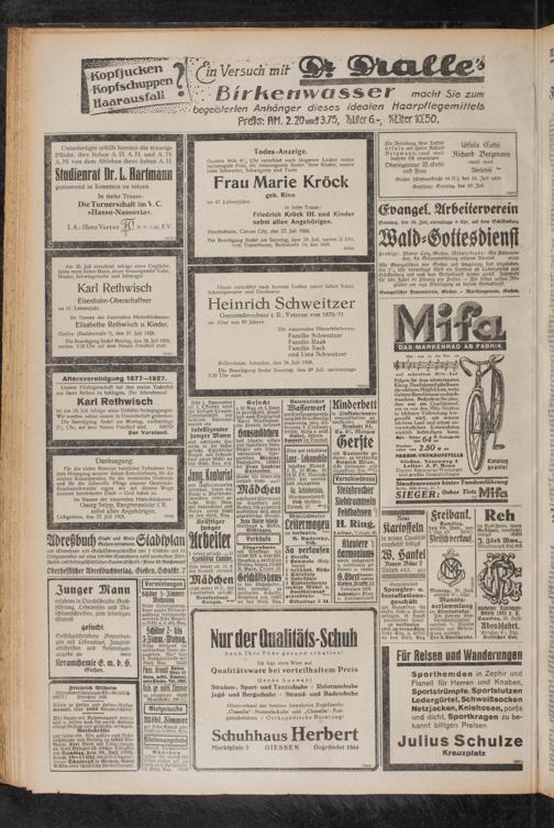 Gießen (Buddestraße 7), den 27. Juli 1928.