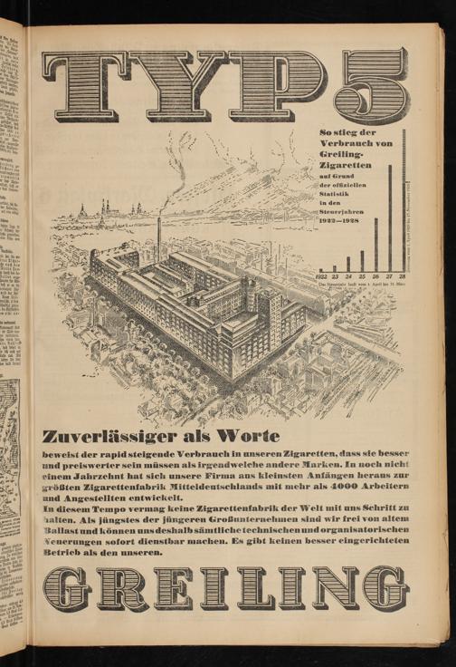 beweist der rapid steigende Verbrauch in unseren Zigaretten, dass sie besser und preiswerter sein müssen als irgendwelche andere Marken. In noch nicht einem Jahrzehnt hat sich unsere Firma aus kleinsten Anfängen heraus zur größten Zigarettenfabrik Mitteldeutschlands mit mehr als 4000 Arbeitern und Angestellten entwickelt.