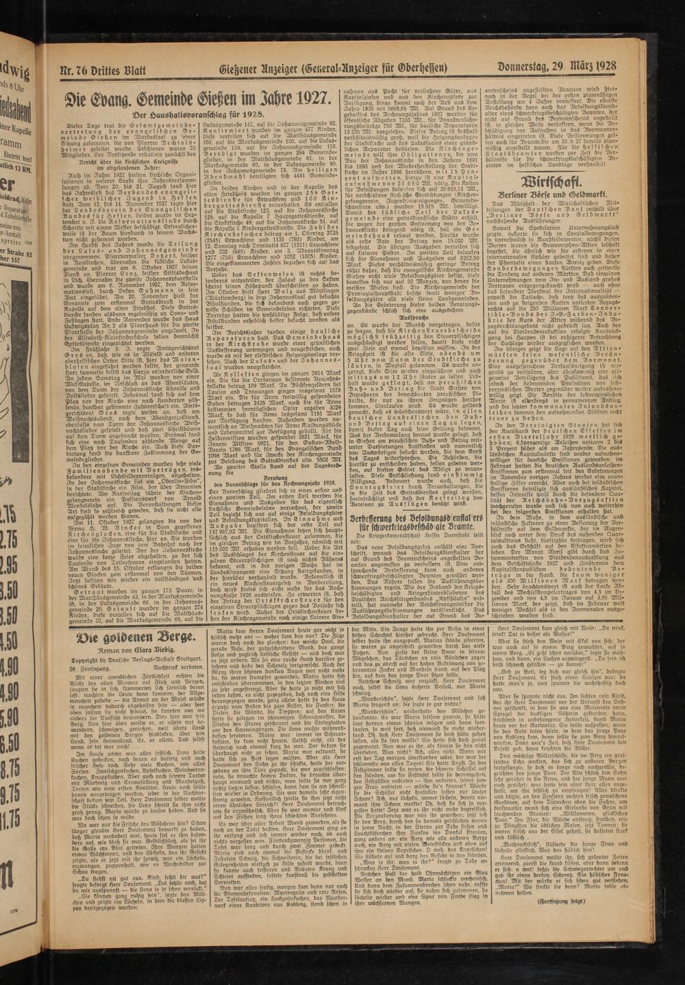 Rr. 76 Drittes Blatt Gietzener Anzeiger (General-Anzeiger für Gberhessen)___________Donnerstag, 29 März 1928