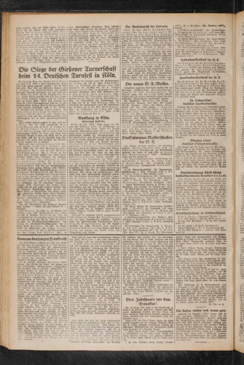 Die Siege der Gießener Turnerschafi beim 14. Deutschen Turnfest in Köln.