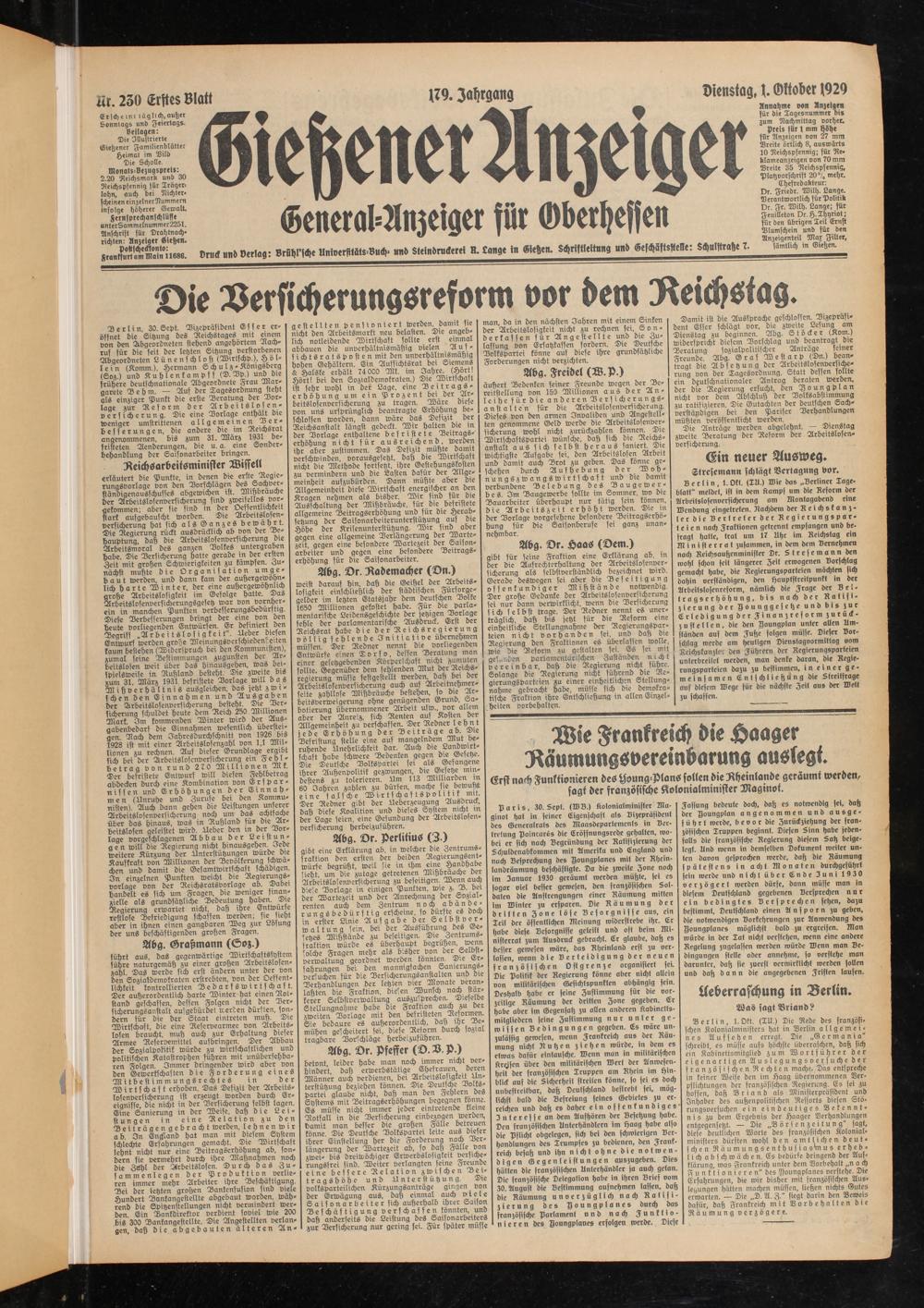 to 250 Ws Blatt >79. Mrgtmg Oieastag, 1. ®lfob«r 1929