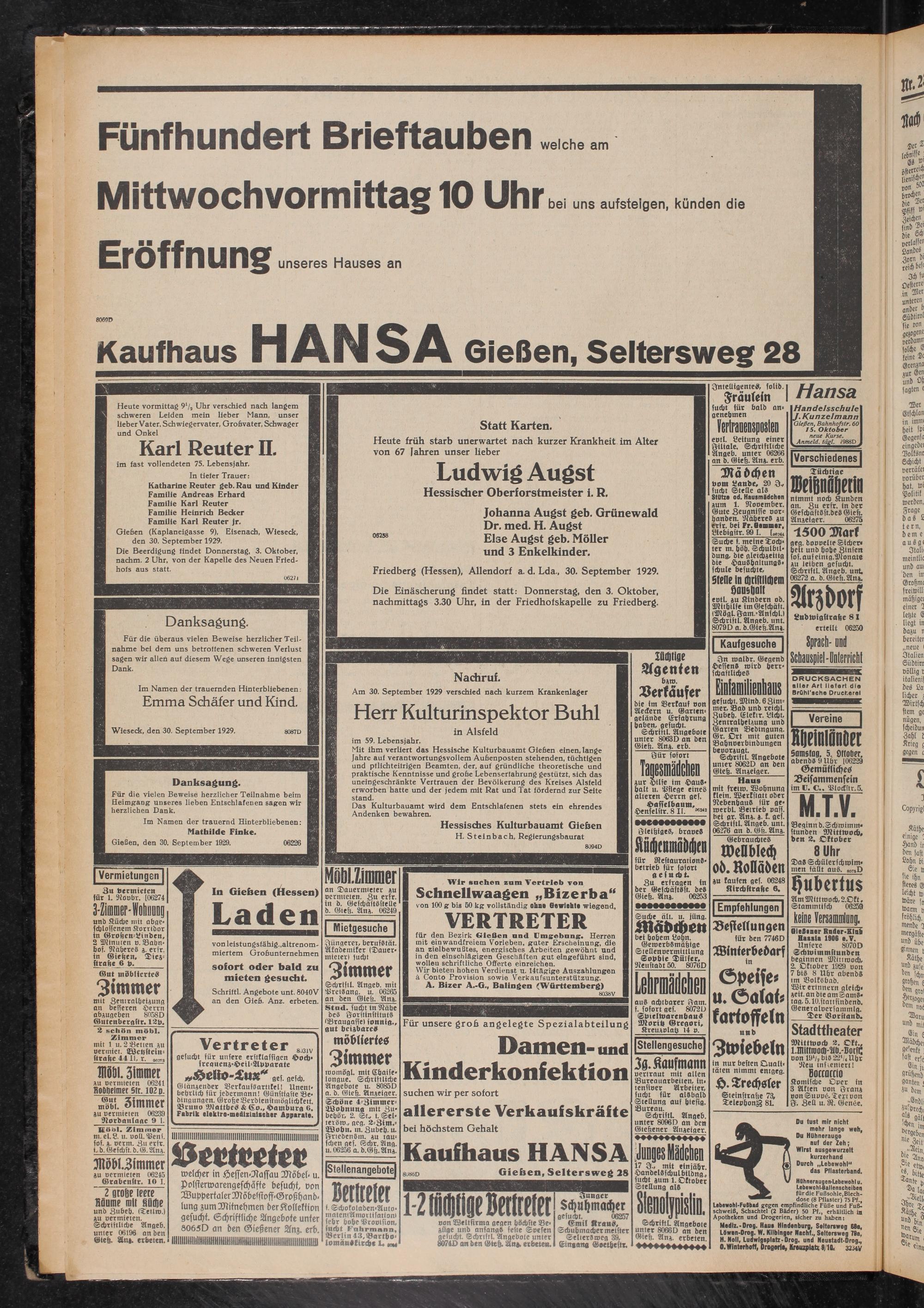 Gießen, den 30. September 1929.