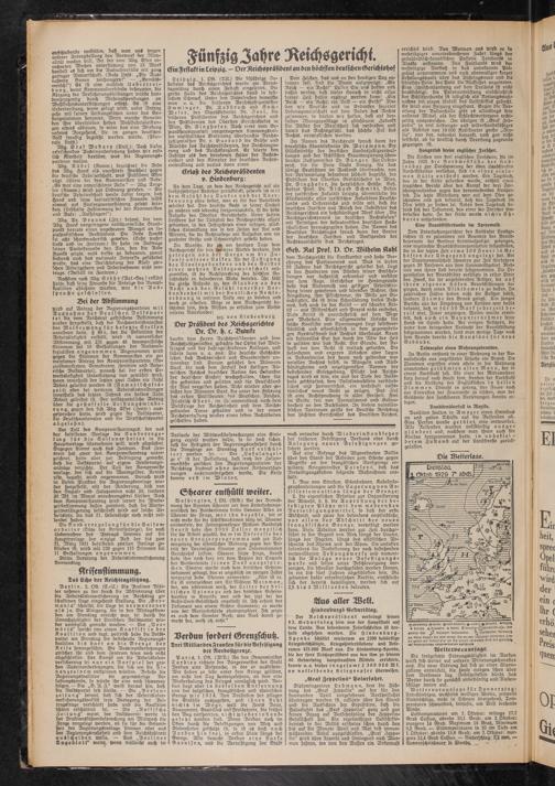 dankte dem Herrn Reichspräsidenten und dem Reichsjustizminister, gedachte der Opfer des Weltkrieges und der dahingeschiedenen Kollegen, und führte dann u. a. aus: Die deutsche Geschichte lehrt, daß Rechtseinheit und Staatseinheit untrennbar sind. Darum gebührt den Männern Dank, die nach dem Zerfall des Heiligen Römischen Reiches deutscher Nation den Gedanken der deutschen Einheit wachgehalten, schon für ihn gestritten und gelitten und für Deutschland ihr Blut vergossen haben. Nicht minder aber gebührt den Männern Dank, die unter der Führung des ersten Präsidenten des Deutschen Reiches, Friedrich Ebert, im Zusammenbruch nach dem Weltkriege der Reichseinheit und dem Reichs- gsdanken Treue gehalten und in der neuen Reichsverfassung wieder einen festen Rechtsboden geschaffen haben.