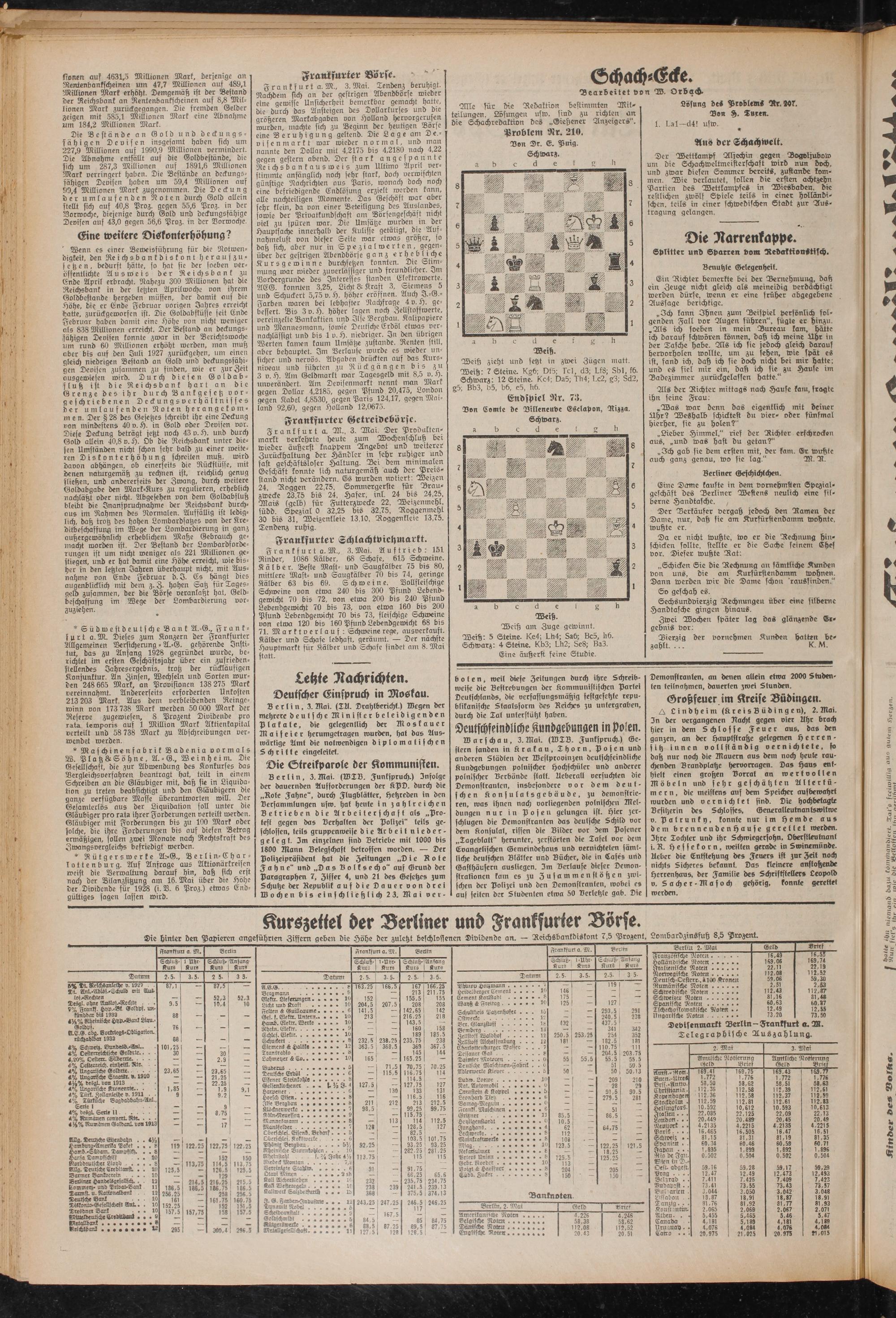 Alle für die Dedaktion bestimmten Mitteilungen. Losungen usw. sind zu richten an die Schachredaktion des „Tießener Anzeigers".
