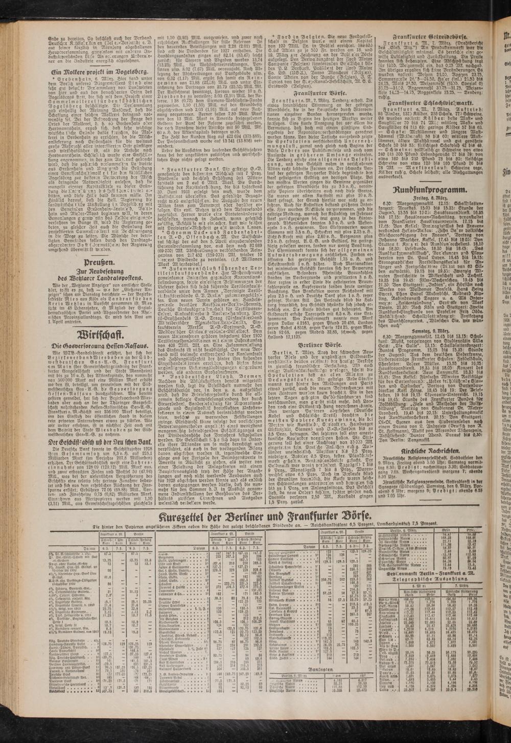 Israelitische Religionsgemeinbe, Gottesdienst in der Synagoge (Hüdanlage). Samstag, den 9. März, Vorabend 6 Uhr; morgens 9; Predigt: abend« 6 25 und 7.05 Uhr.