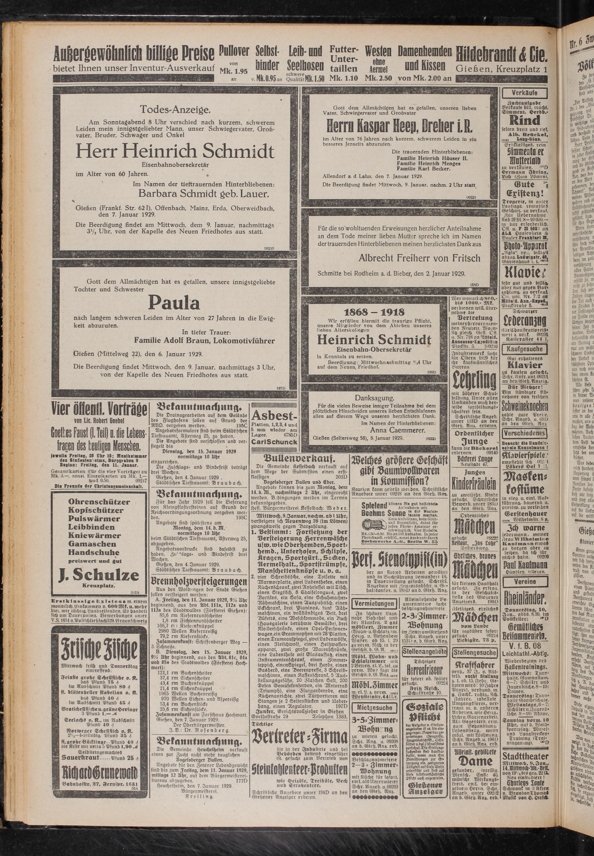 Gießen (Mittelweg 22), den 6. Januar 1929.