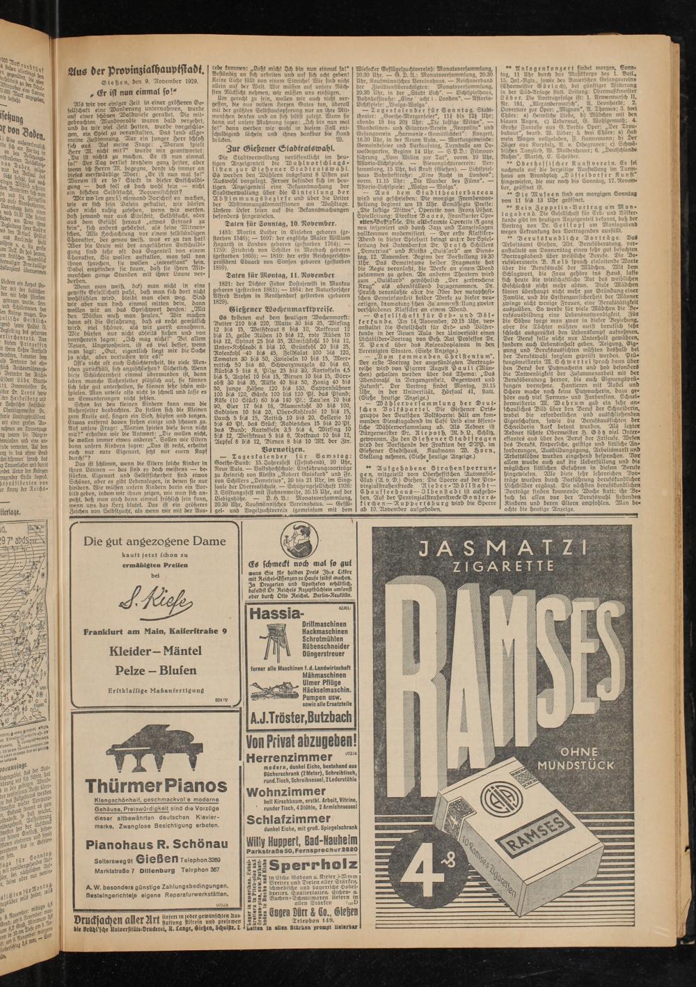 Giehen, den 9. November 1929.