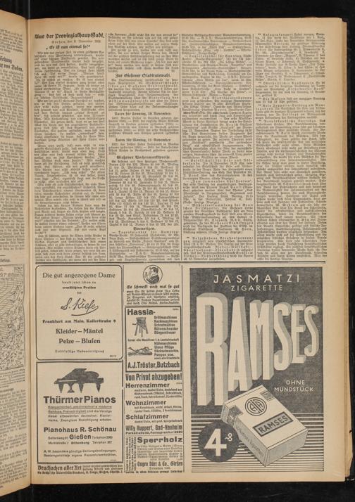 Die Stadtverwaltung veröffentlicht im heutigen Anzeigenteil die WahlvorschlagS- listen zur Gießener Stadtratswahl. Es werden den Wählern insgesamt 8 Listen zur Auswahl vorgelegt. Ferner befindet sich im heutigen Anzeigenteil eine Bekanntmachung der Stadtverwaltung über die Einteilung der Abstimmungsbezirke und über die Leiter der Abstimmungskommissionen am Wahltage. Untere Leser seien auf die Bekanntmachungen besonders hingewiesen.