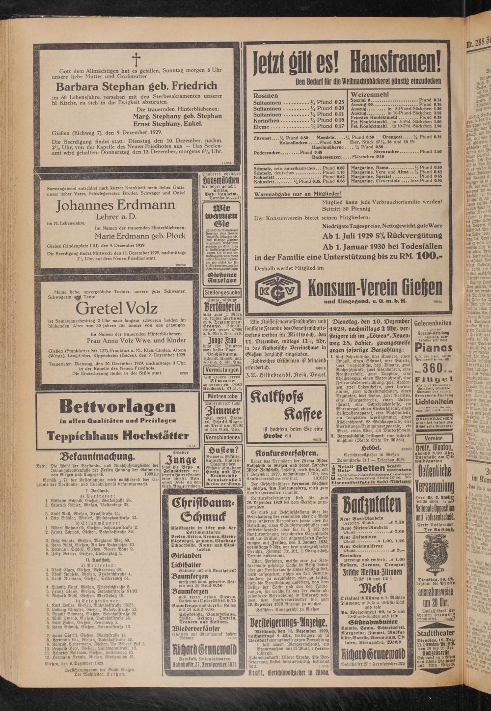 Gießen (Eichweg 7), den 9. Dezember 1929.