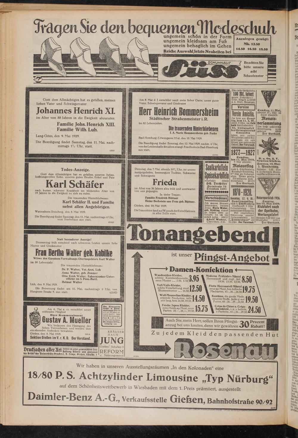 Gießen, den 10, Mal 1929.