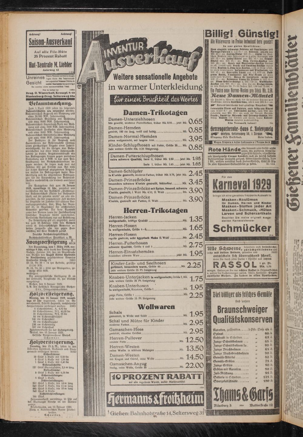 Am Donnerstag, dem 7. März 1929, vormittags 9 Uhr, wird durch das Amtsgericht Gießen, Zimmer 106, das im Grunobuche von Gießen den August Körbel Eheleuten in Rauschenberg zugeschriebene Anwesen ärofborfer Straße 75 296D