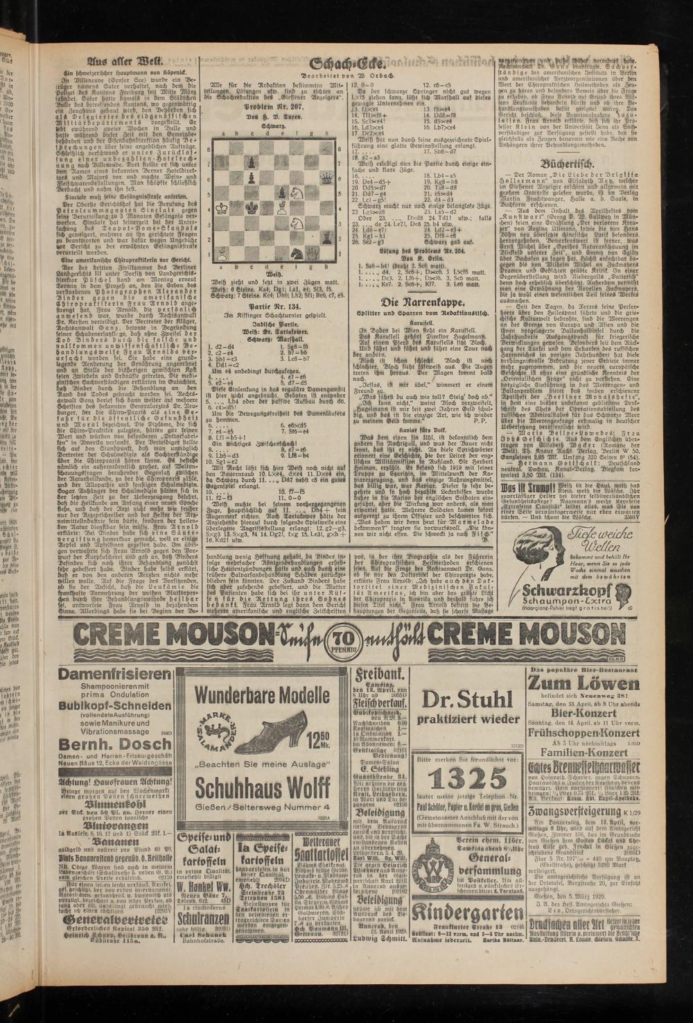 Alle für di« Redaktion bestimmten Mitteilungen, Lösungen usw. sind zu richten an die Schachredaktion des „Gießener Anzeigers".
