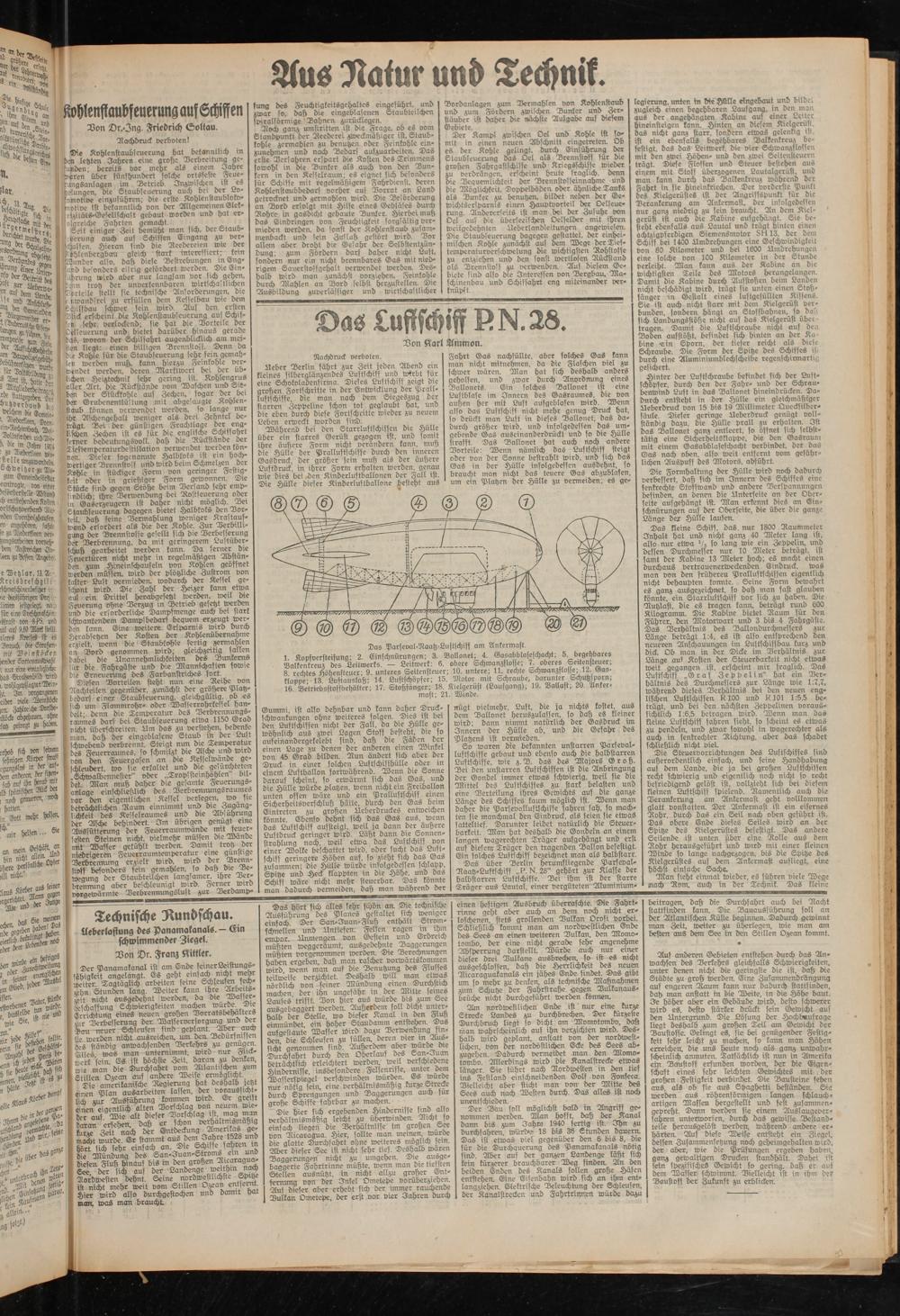 Lieber Berlin fährt zur Zeit jeden Abend ein kleines silberglänzendes Luftschiff und totrbt für eine Schokoladenfirma. Dieses Luftschiff zeigt die großen Fortschritte in der Entwicklung der Prall- luftschiffe, die man nach dem Siegeszug der starren Zeppeline schon tot geglaubt hat, und die eben durch diese Fortschritte wieder zu neuem Leben erweckt worden sirü).