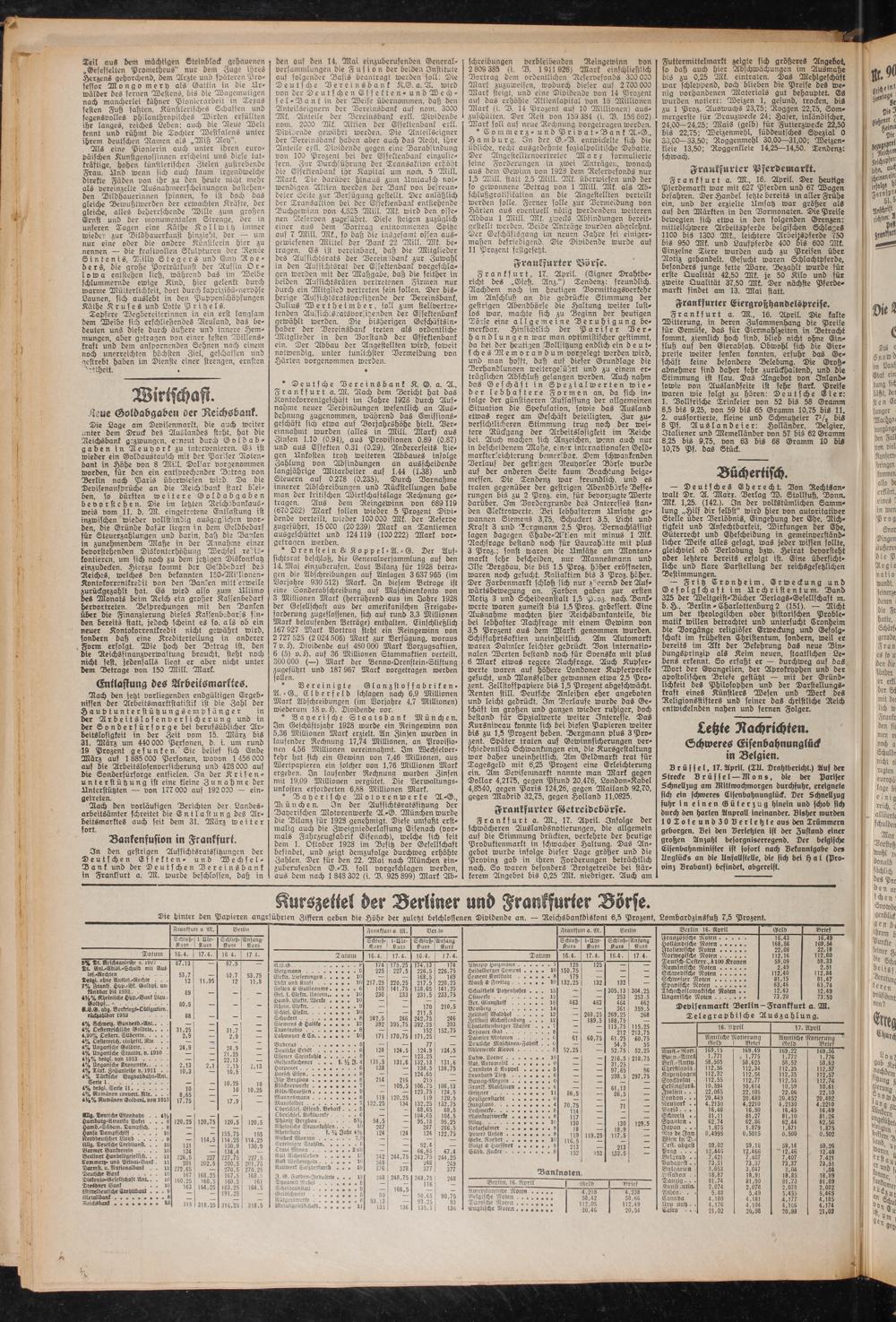 KurszeiieL der BerSmsr und Krankfurier Börse.
