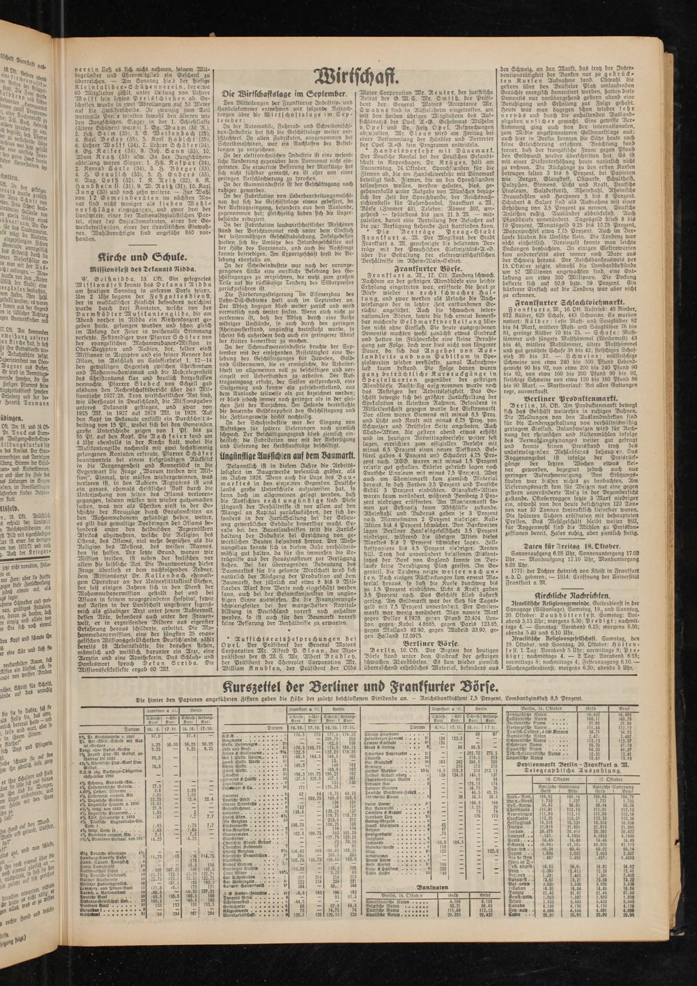 Israelitische Religionsgemeinde. Gottesdienst in der Synagoge (Südanlage). Samstag, 19., und Sonntag, 20. Oktober: Laubhüttenfest. Samstag: Vorabend 5.15 Uhr: morgens 8.30; Predigt; nachmittags 4. — Sonntag: Vorabend 6.15; morgens 8.30; abends 5.40 und 6.10 Uhr.