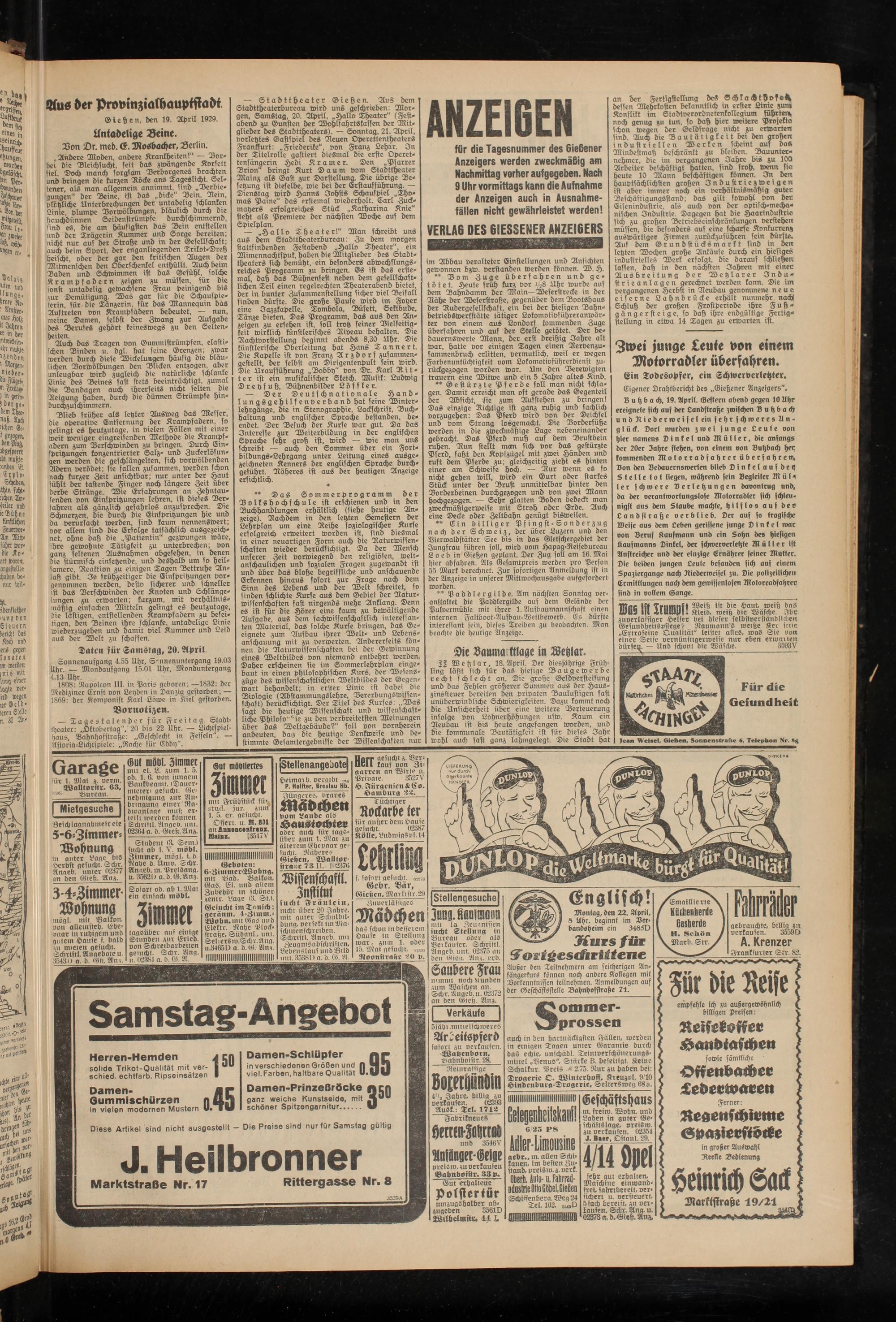 für die Tagesnummer des 6ießener Anzeigers werden zweckmäßig am Nachmittag vorher aufgegeben. Nach 9 Uhr vormittags kann die Aufnahme der Anzeigen auch in Ausnahmefällen nicht gewährleistet werden!