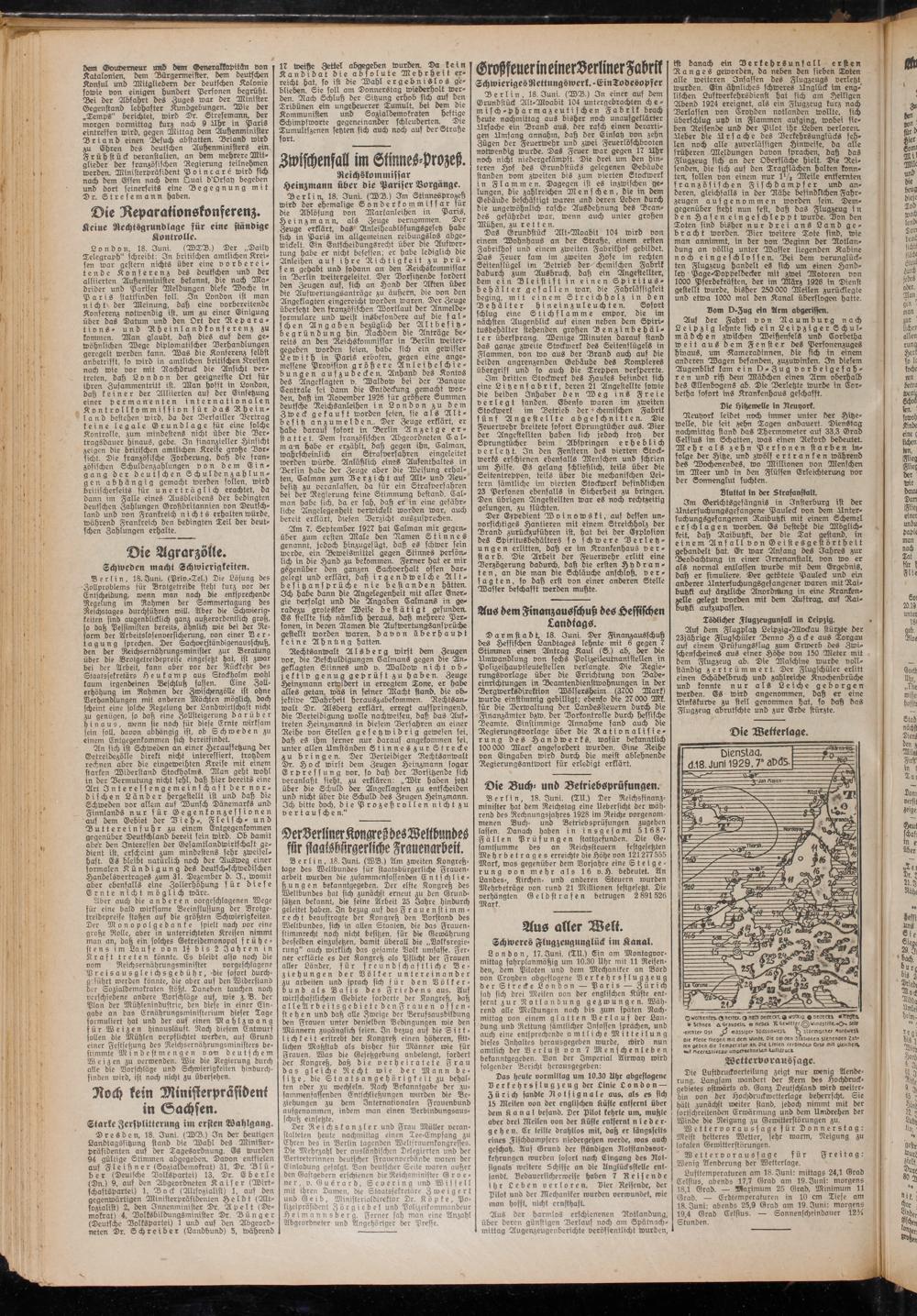 Lufttemperaturen am 18. Juni: mittags 24,1 Grad Celsius, abends 17,7 Grad am 19. Juni: morgens 18,1 Grad. — Maximum 25 Grad, Minimum 11 Grad. — Erdtemperaturen in 10 cm Tiefe am 18. Juni: abends 25,9 Grad am 19. Juni: morgens 19,4 Grad Celsius. — Sonnenscheindauer 12)4 Stunden.