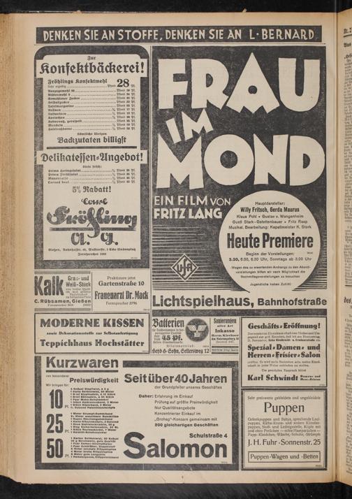 Der verehrten Einwohnerschaft von Gießen und Umgegend zur gefl. Kenntnis, daß ich am Donnerstag, 21. November, Ecke Glanbrecht- n. Crednerstrafle ein