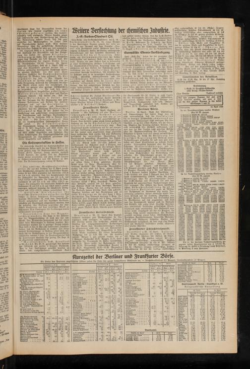 ten um 3,40 Prozent und Siemens um 4,25 Prozent anziehen, auch Konti Kautschuk plus 2.5 Prozent, Svenska plus 5 Mk. und Polyphon plus 8 Prozent fanden stärkere Beachtung. In I.-G.-Farben mit plus 2 Prozent war das Geschäft verhältnismäßig lebhaft, wobei die neuen Mitteilungen über die gemeinschaftliche Arbeit der I.-G.-Farben und Standard Oil und das Ergebnis der amerikanischen Verhandlungen hierüber anregten. Die Ziffern der heute veröffentlichten Außenhandelsbilanz, die mit 38 Millionen Passivität gegen 44 Millionen Reichsmark im Vormonat nur wenig Veränderung aufweifen, hatten ebenfalls keinen stärkeren Einfluß auf die Tendenz. Abgesehen von wenigen kleinen Kauforders des Auslandes war die Spekulation auf sich angewiesen, und dies war der Hauptgrund, warum auch im Verlaufe das Geschäft sehr ruhig blieb. Deutsche Anleihen eher abbröckelnd. Ausländer geschäftslos. Pfandbriefmarkt noch unentwickelt. Der Geldmarkt war weiter leicht. Tagesgeld 4,5 bis 6,5 Prozent, die übrigen Sähe waren unverändert. Im Verlaufe zunächst meistens etwas fester. Schiffahrtsaktien, Polyphon, Kunstseidenwerte, Bayerische Wotoren- Werke und Kaliwerte lebhafter. Später, vom Elektromarkt ausgehend, an dem man eine Großbank als Verkäufer beobachten wollte, allgemein aber wieder schwächer.