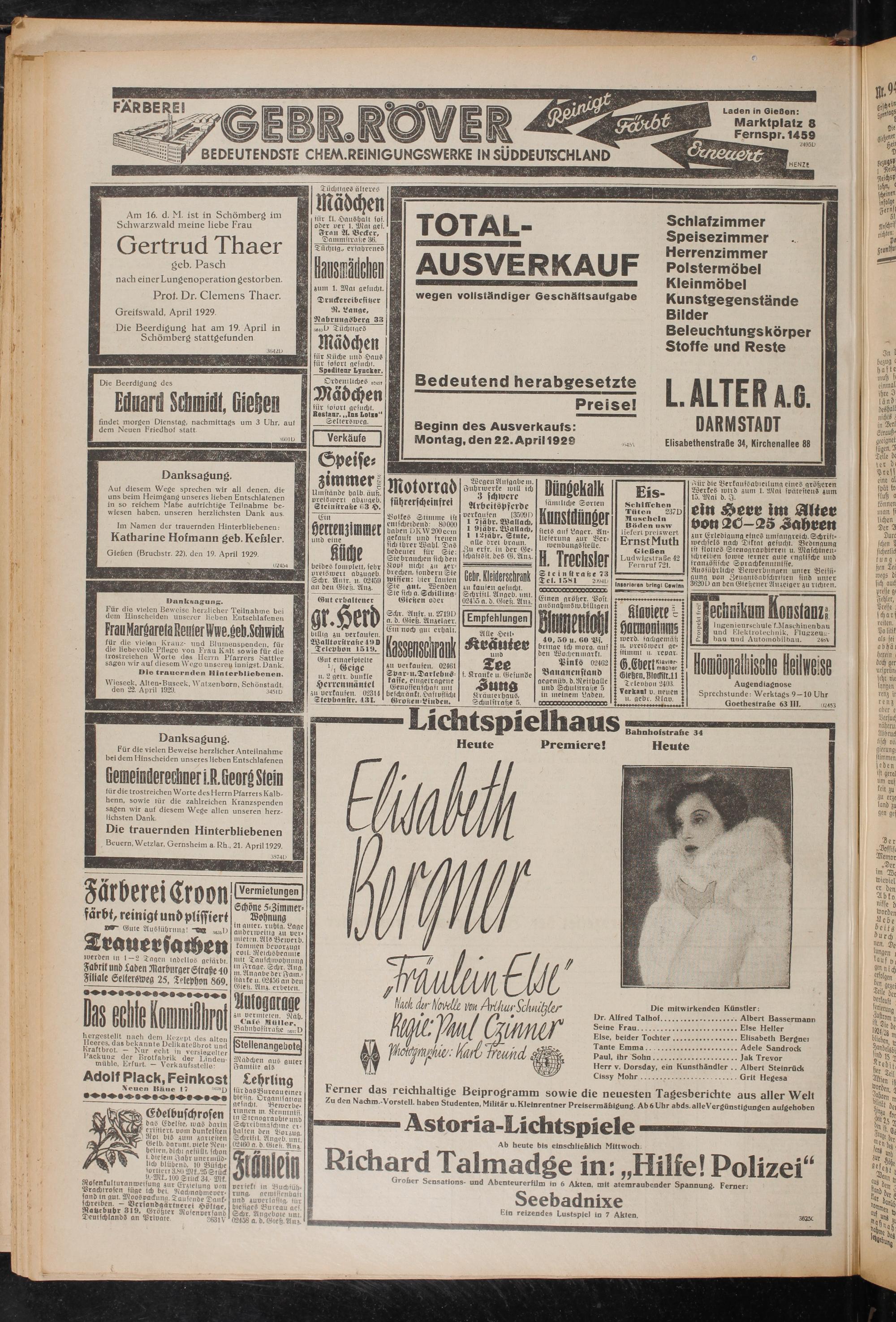 Beuern, Wetzlar. Gernsheim a. Rh., 21. April 1929.