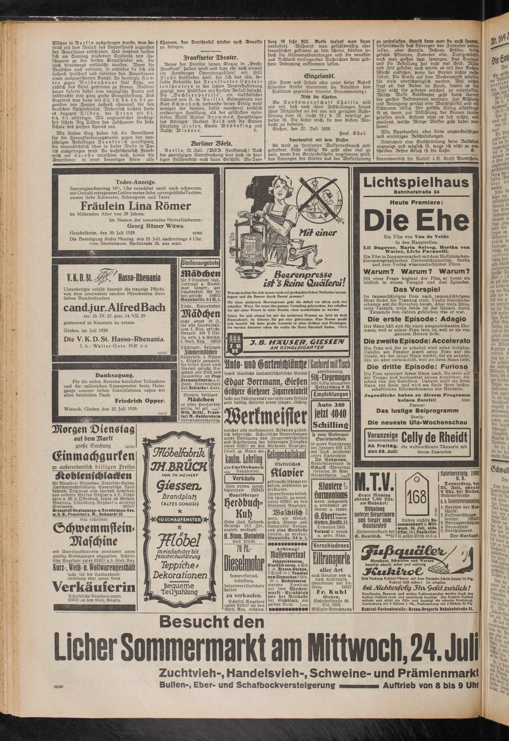 Die Beerdigung findet Montag, den 22. Juli, nachmittags 6 Uhr, vom Sterbehause, Bachstraße 26, aus statt.