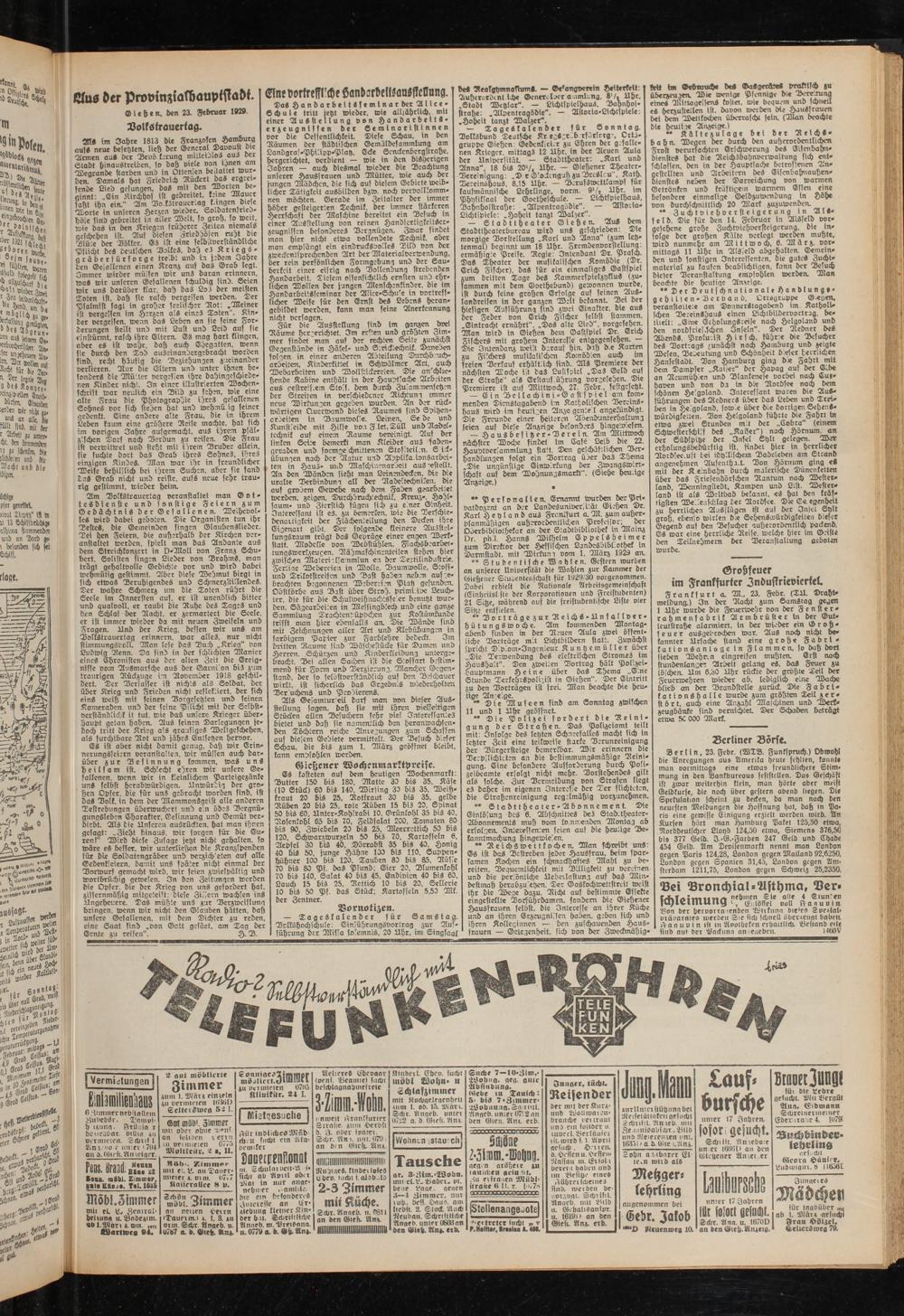— Tageskalender für Samstag. Volkshochschule: Einsührungsvortrag zur Aufführung der Missa solemnis, 20 Uhr. im Singsaal