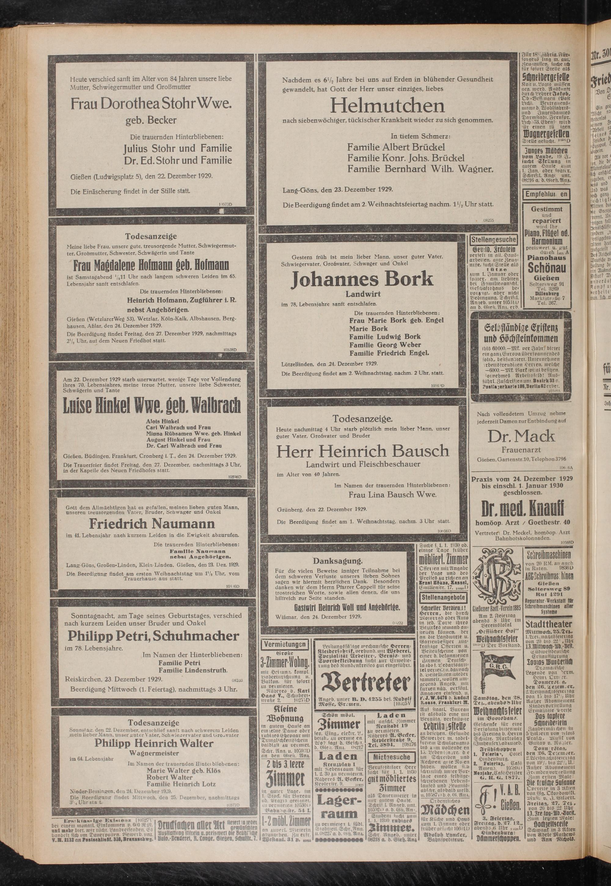 Lang-Göns, Großen-Linden, Klein-Linden, Gießen, den 23. Dez. 1929.