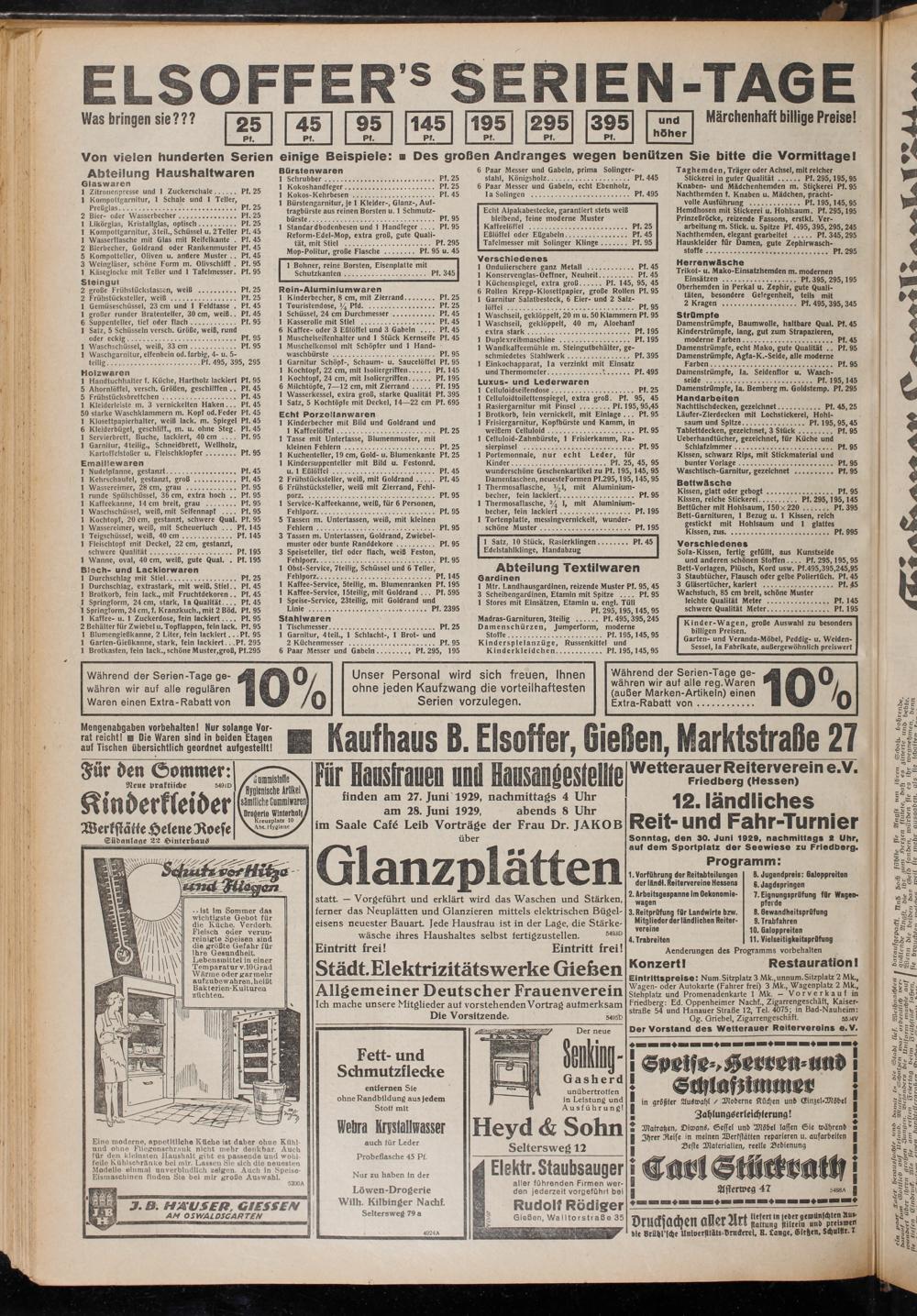 Für Hinsfranen und Hausangestellte finden am 27. Juni 1929, nachmittags 4 Uhr am 28. Juni 1929, abends 8 Uhr