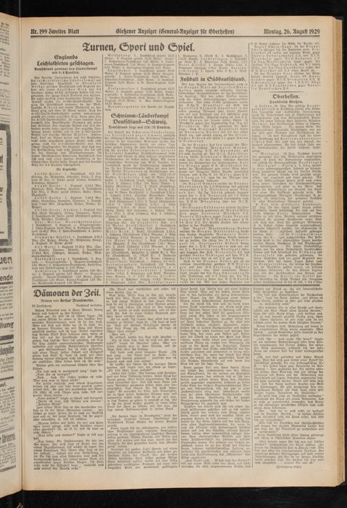 Nr. 199 Zweites Blatt Gießener Anzeiger (General-Anzeiger für tvberhessen)Montag, 26. August (929