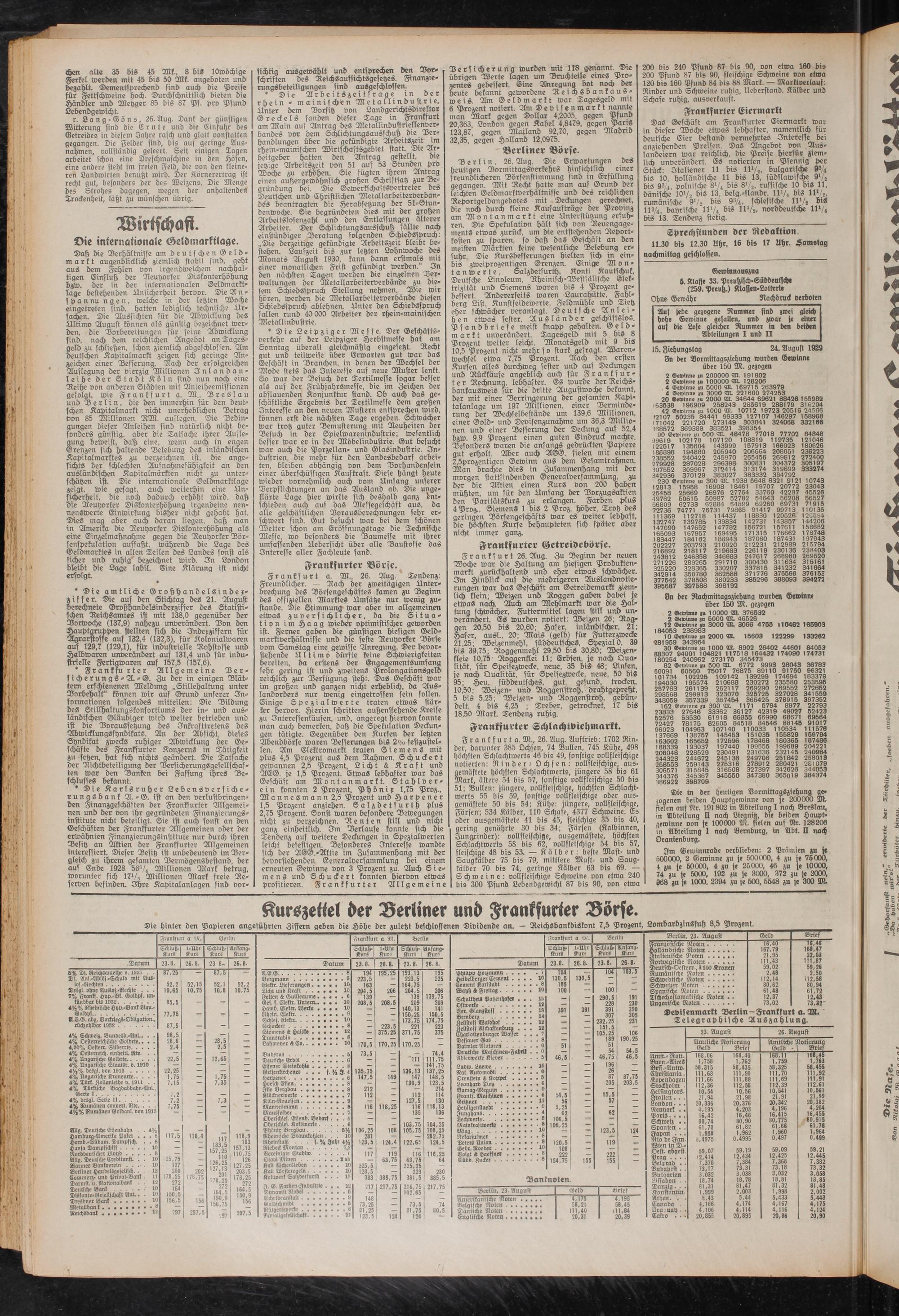 Die hinter den Papieren angeführten Ziffern geben die Höhe der zuletzt beschloffenen Dividende an. — Reichsbankdiskont 7,5 Prozent, Lombardzinsfnh 8,5 Prozent