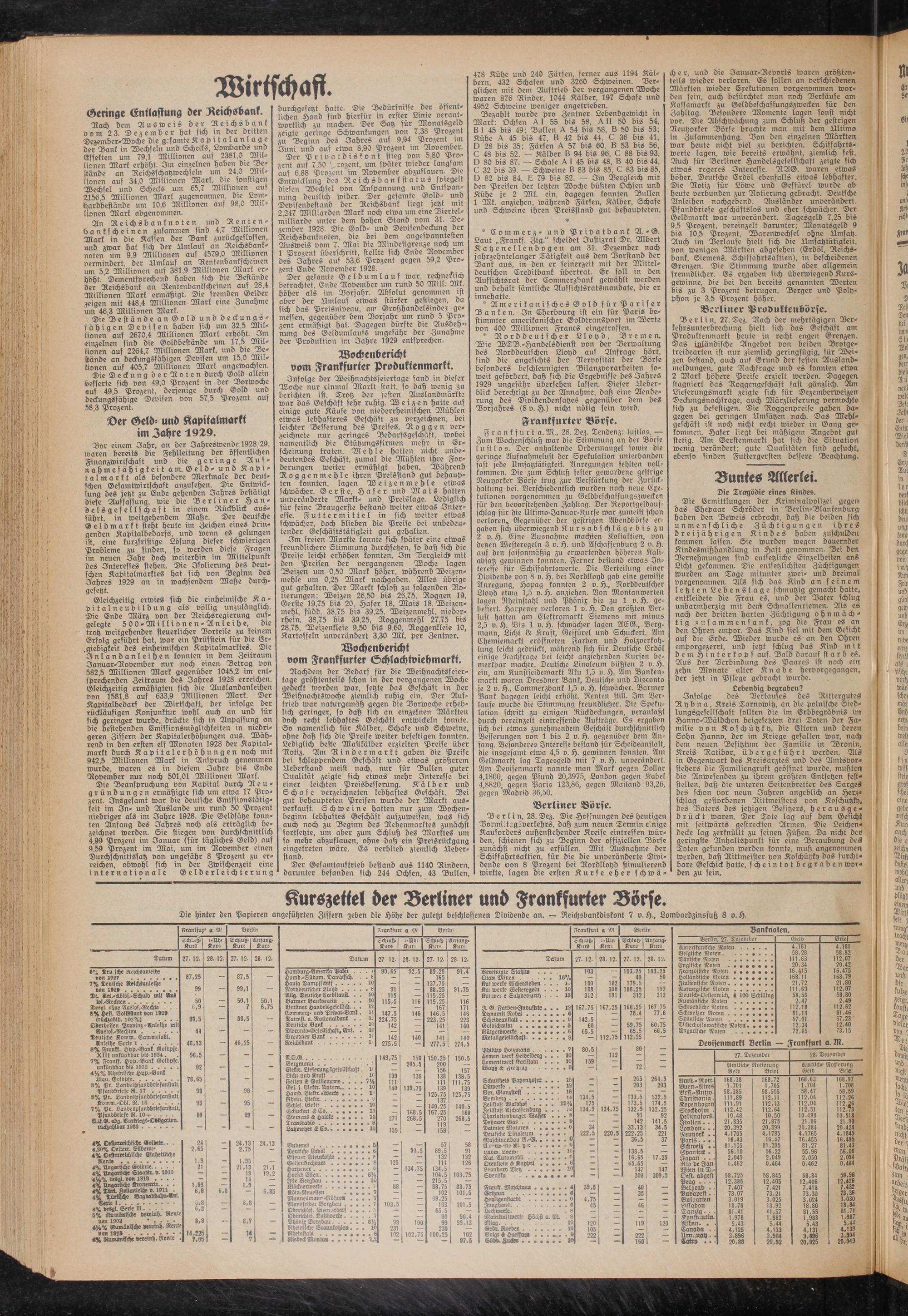 Der Geld- und Kapitalmarkt im Jahre 1929.