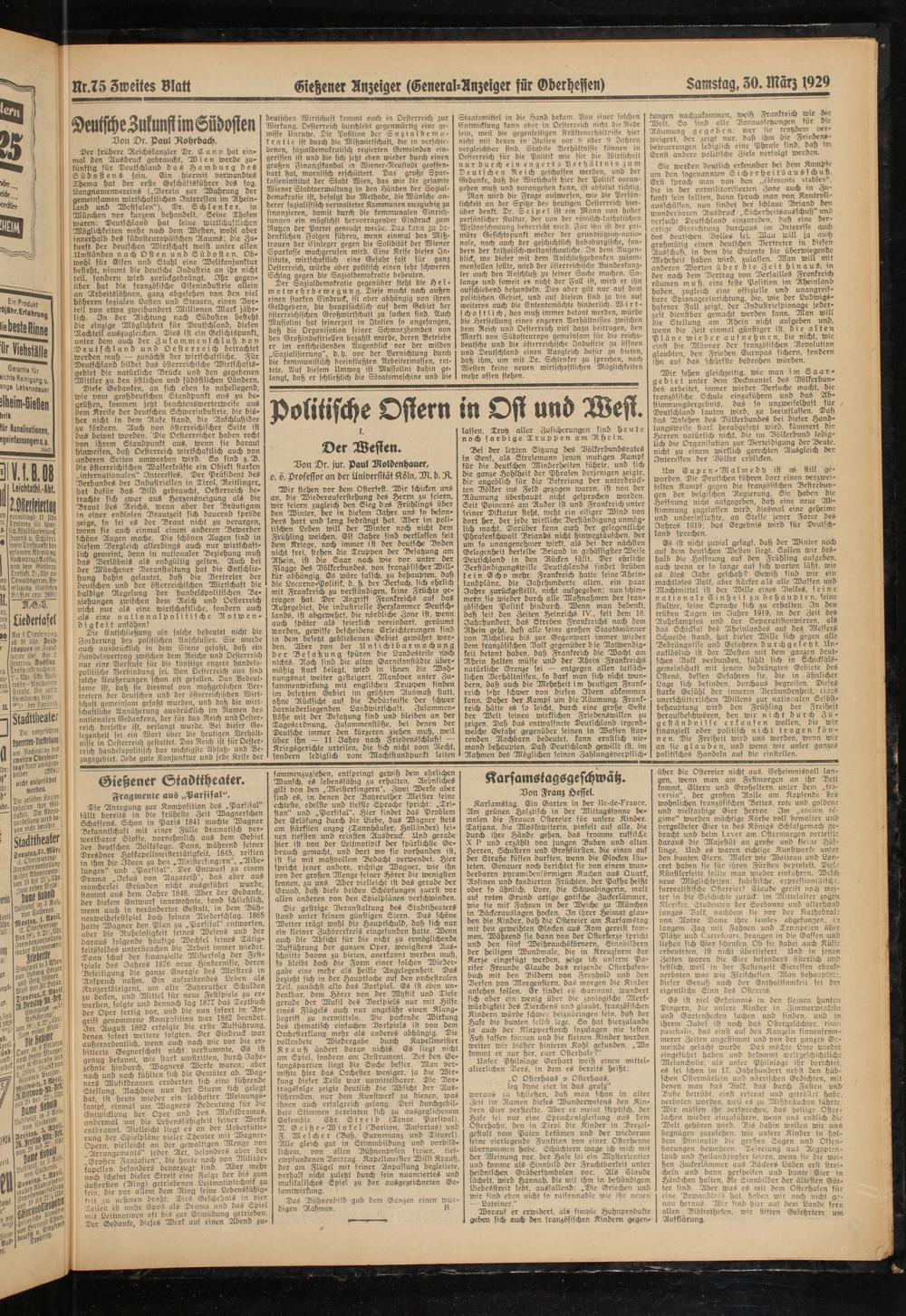 Hr.75 Zweiter Blatt Giehener Anzeiger (General-Anzeiger für Gberhessen) Samstag, 30. März 1929