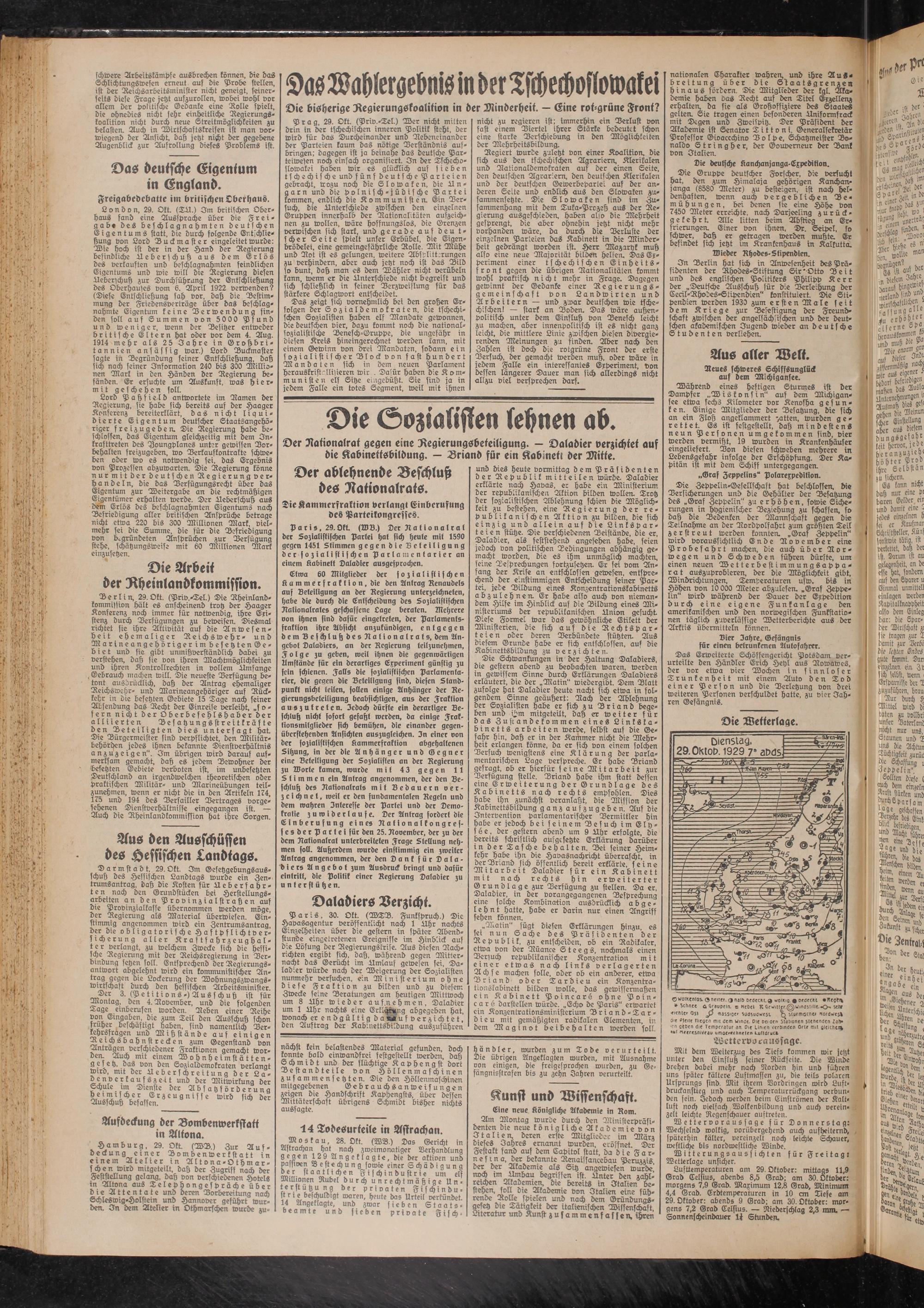 Der Rationalrat gegen eine Regierungsbeteiligung. — Dalahier verzichtet auf hie Kabinettsbilhung. — Brianh für ein Kabinett her Mitte.