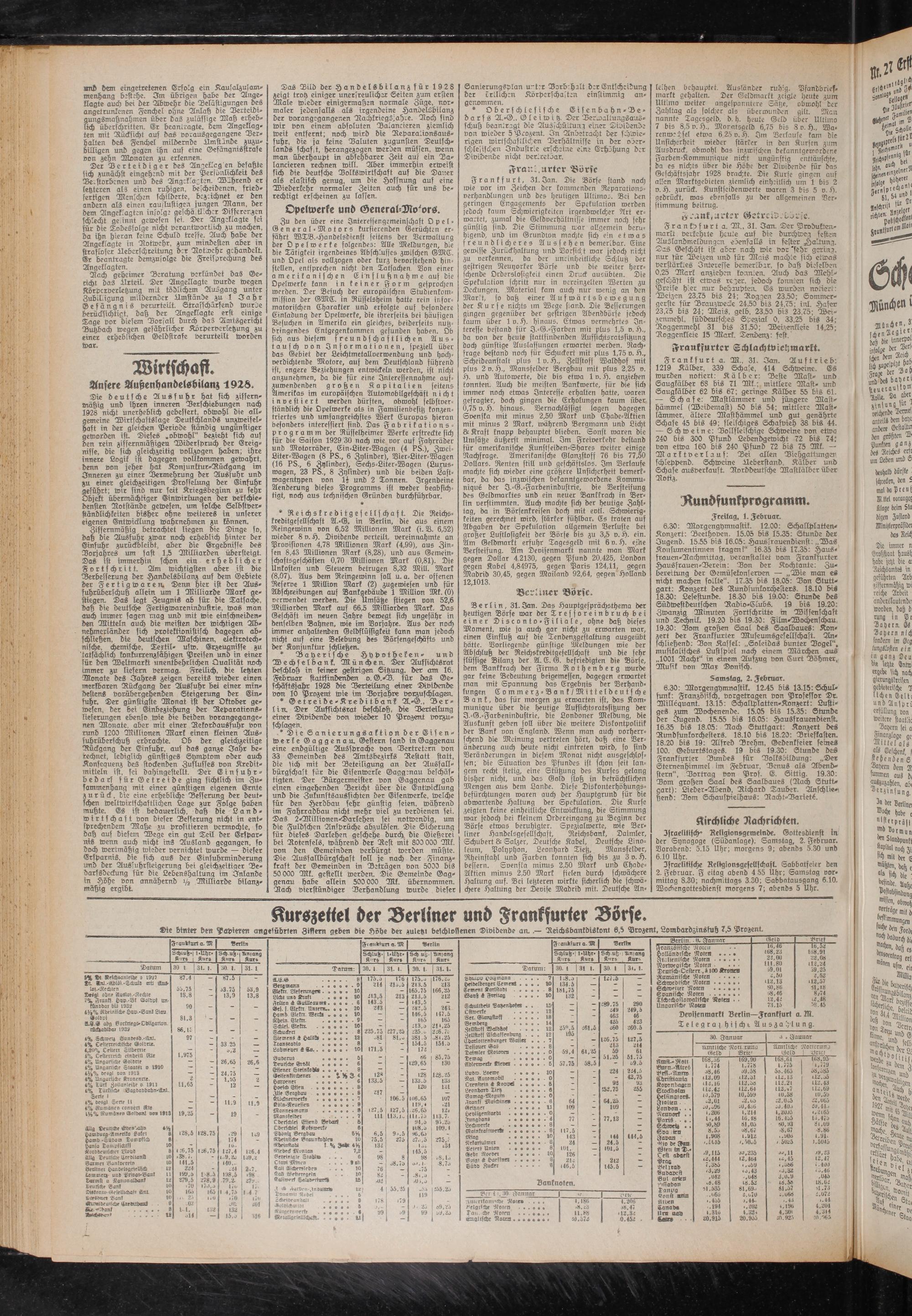 Israelitisch" Religionsgemeinde. Gottesdienst in der Synagoge (Südanlage). Samstag, 2. Februar. Vorabend: 5.15 Uhr; morgens 9; abends 5.30 und 6.10 Uhr.