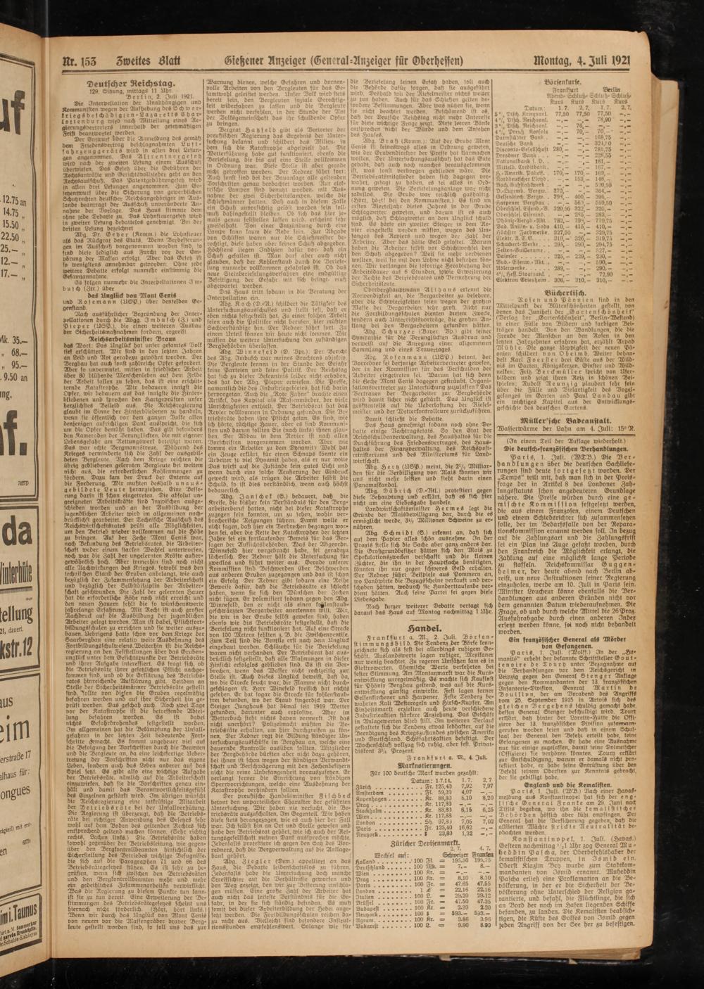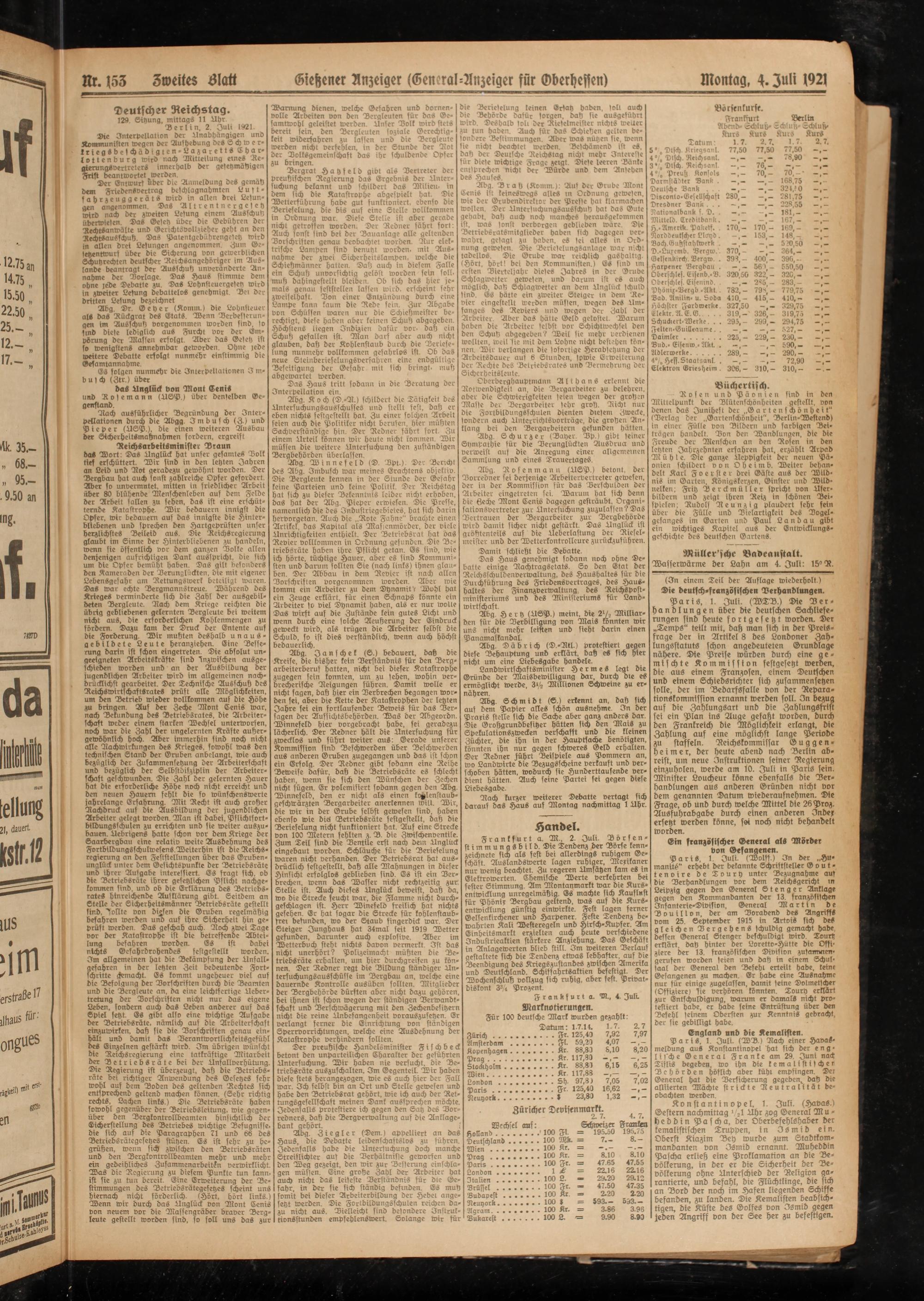 Hr. (55 Zweiter ölatt Gießener Anzeiger (General-Anzeiger für Gberhessen) Montag, 4. Zuli (921