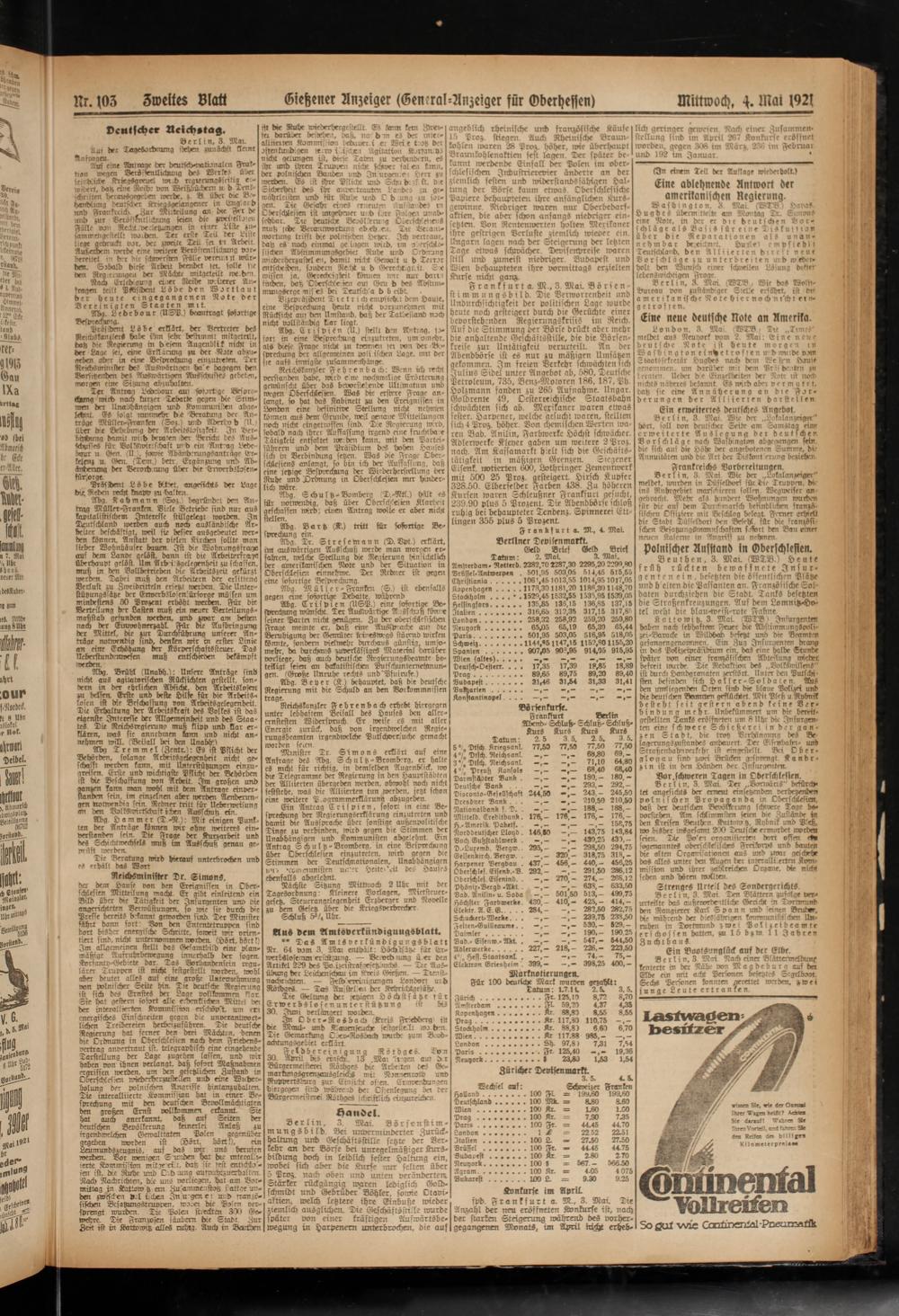 *’ DaS AmtSverkündi'gungsblatt Nr. 64 tunt 3. Mai enthält: Höchcksätze für Er- werkSlose^un erfLützuna. — Be.vrbiung ü er ben Artikel 229 des Po. i^i straf Gesetzbuchs — Die Ausübung der Leichenschau im Kreis Gießen. — Ttenst- n«hr:chten. — sZrld ereiuigungen London ui b Rötthges. — Tas 2lusstrl e^i bet Kehrichtgei ätze.