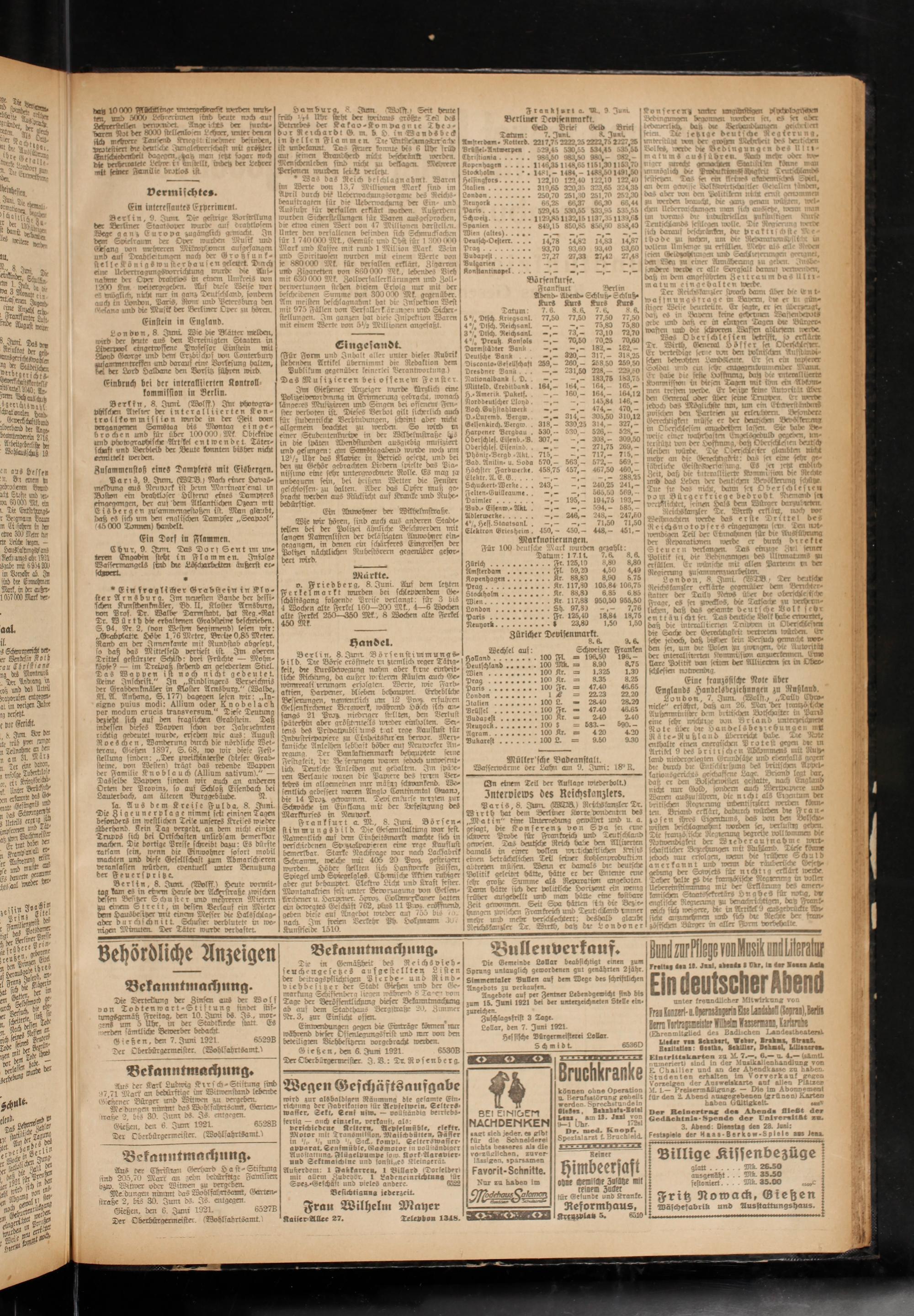 Angebote auf per Zentner Lebendgewicht find bis zum 15. Juni 1921 bei der unterzeichneten Stelle ein« zureichen.