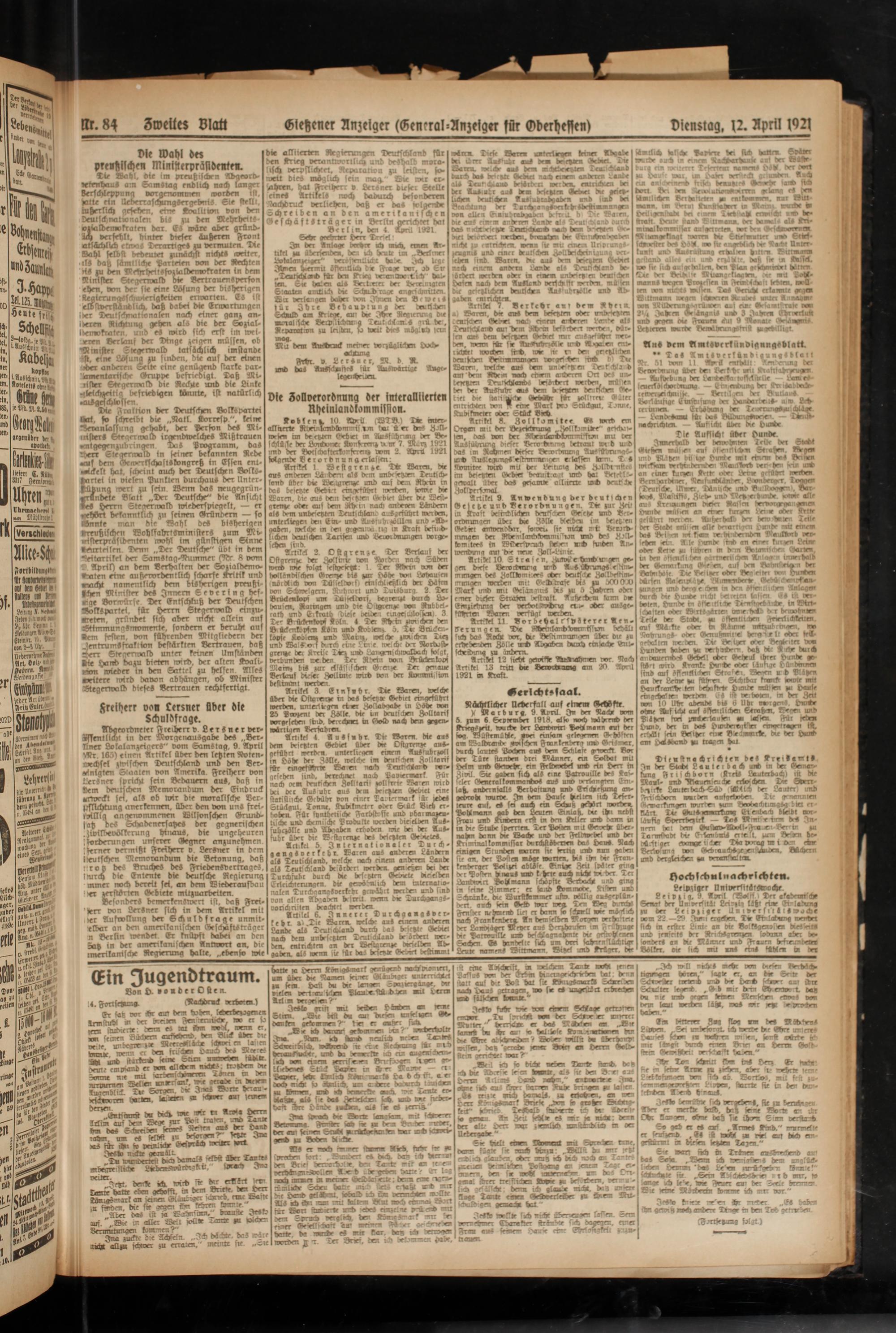 llr. 84 Aweller VlaÜ Eigener Anzeiger (Gencral-Anzeiger für Gberheffen)Dienstag, 12, April 1921
