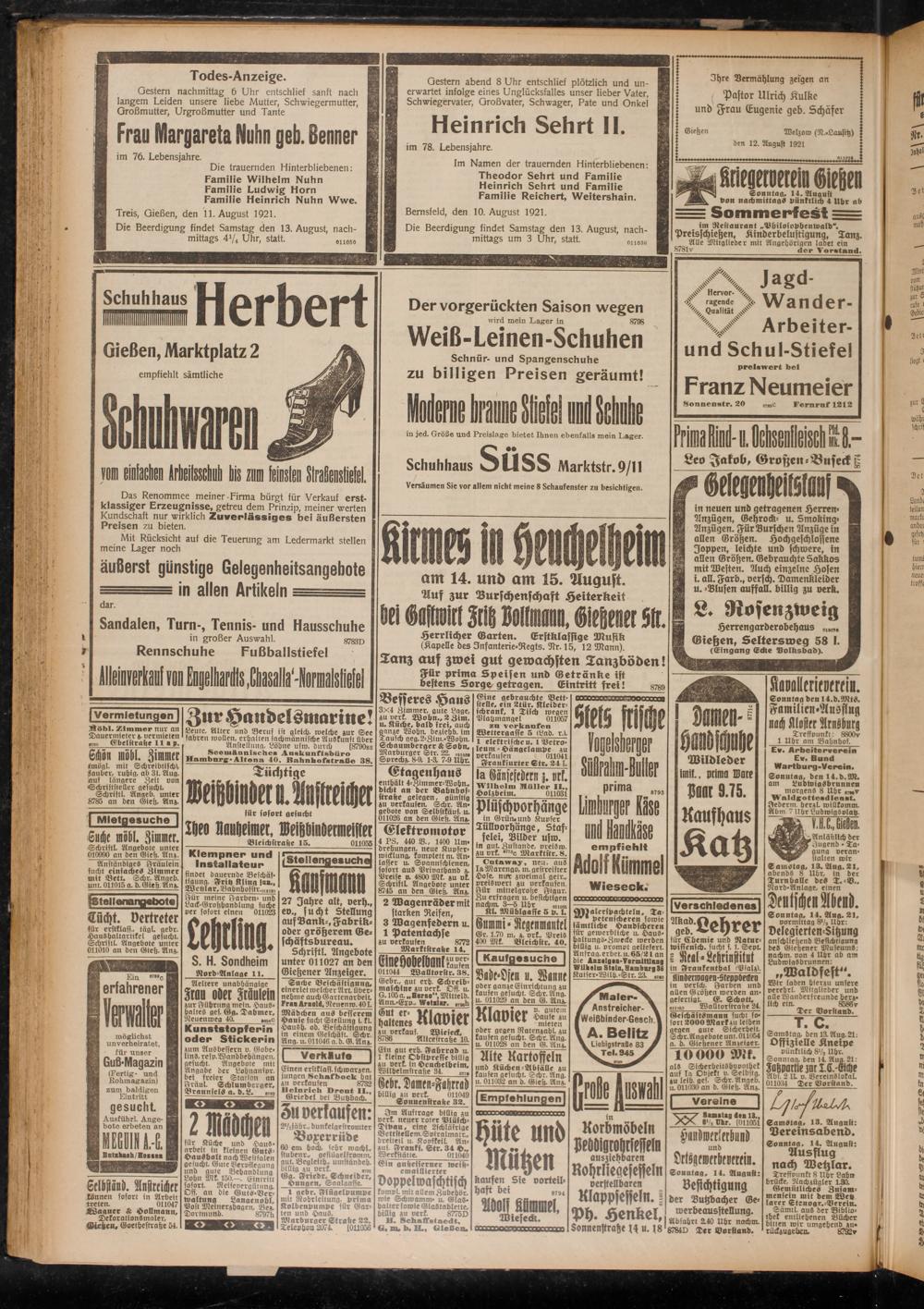 Die Beerdigung findet Samstag den 13. August, nachmittags 41/4 Uhr, statt. 011060