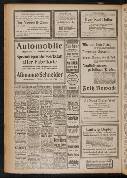 Hausen, Garbenteich, Lang-Göns, Annerod, Wiesbaden, den 14. Juli 1921.