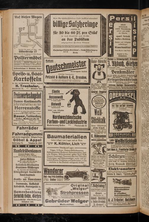Polstermöbel SosaS,2efsel,CbaifelongueS in allenFormen nnv Siollen. — Austaae Matratze mit den danerbaftelten »Flillunaen n. Drellen. — Patent matravcn in allen Gröben u. Auoslthrungen' Kein £aöen,bahcrGrfpornis 6er teurenCabenmiete Polstermöbelhaus R. Wehrheim, Giehen