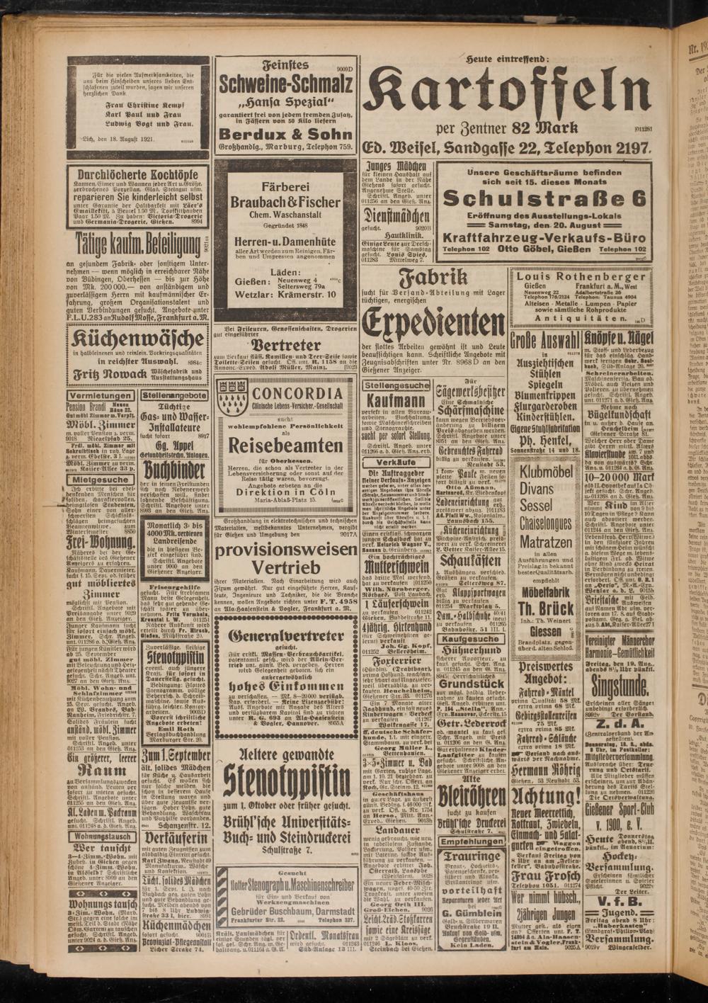 Lich, den 18. August 1921. ells6e