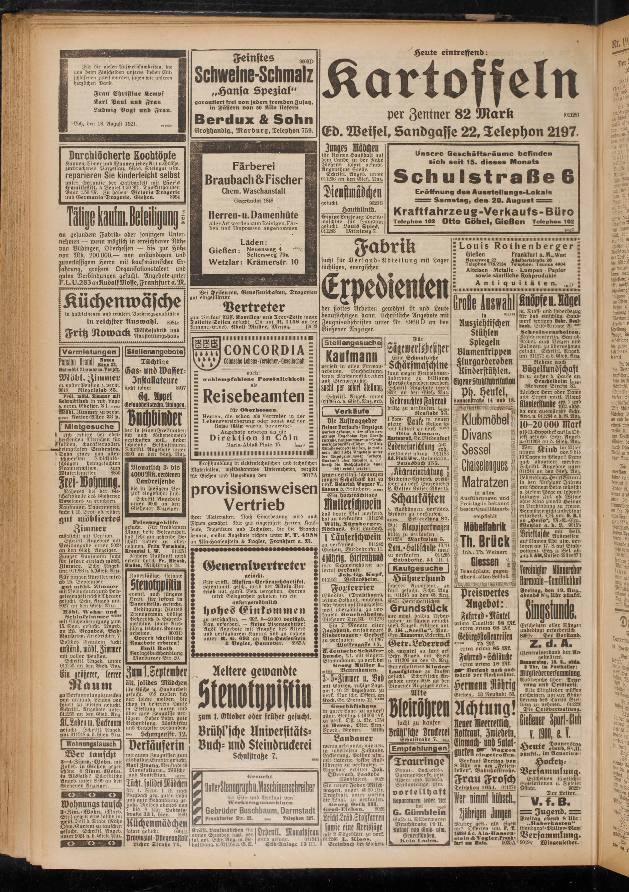 Die Auftraggeber kleiner versauf,- Anzeigen werben gebe en, unter allen derartigen Angeboten ihre Adresse (Strafe, Hauenummer unbStodt« werb)zu verSsientltchen. Soll die Adresse oerdeLt bleiben, so wolle man ^christliche Angebote unter der Siuelgennummer sordern Auebunst über Adressen u. s. f. durch die BelchLfttstelle lanit nicht erteilt werben._______