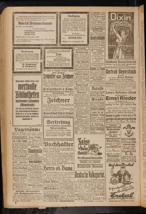Montag, 21. Nov. 1921, abends 8 Uhr