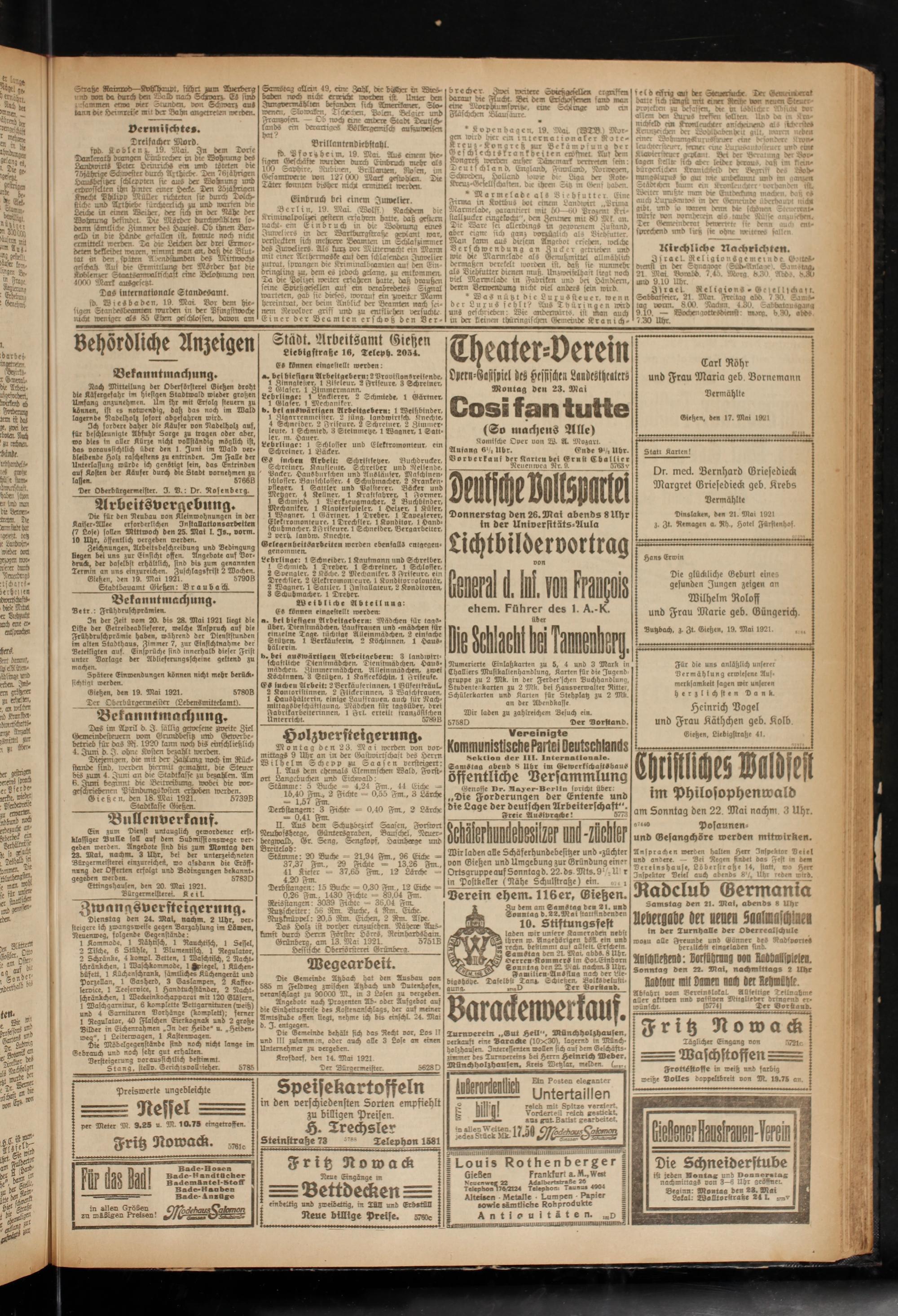 Butzbach, z. It. Gießen, 19. Mai 1921.