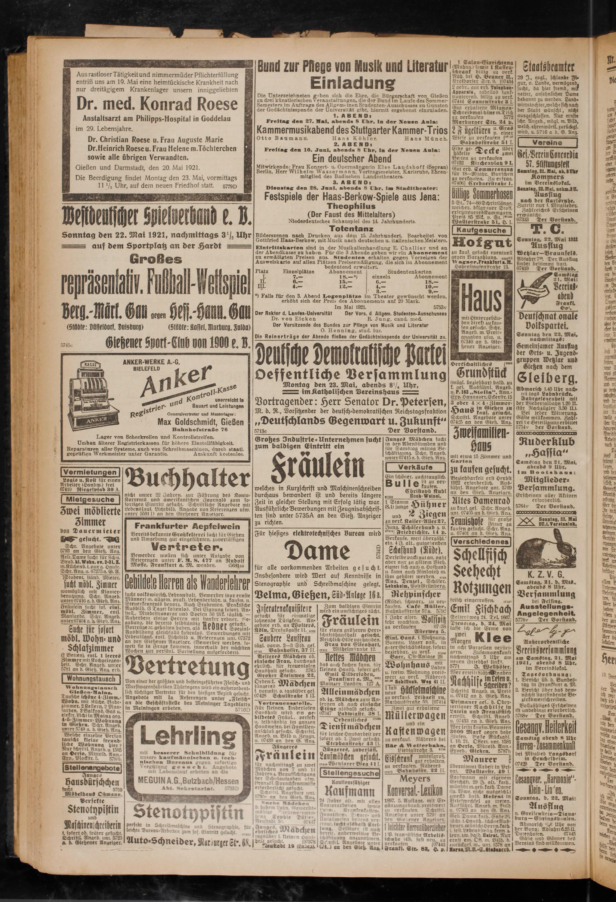 Gießen und Darmstadt, den 20. Mai 1921.