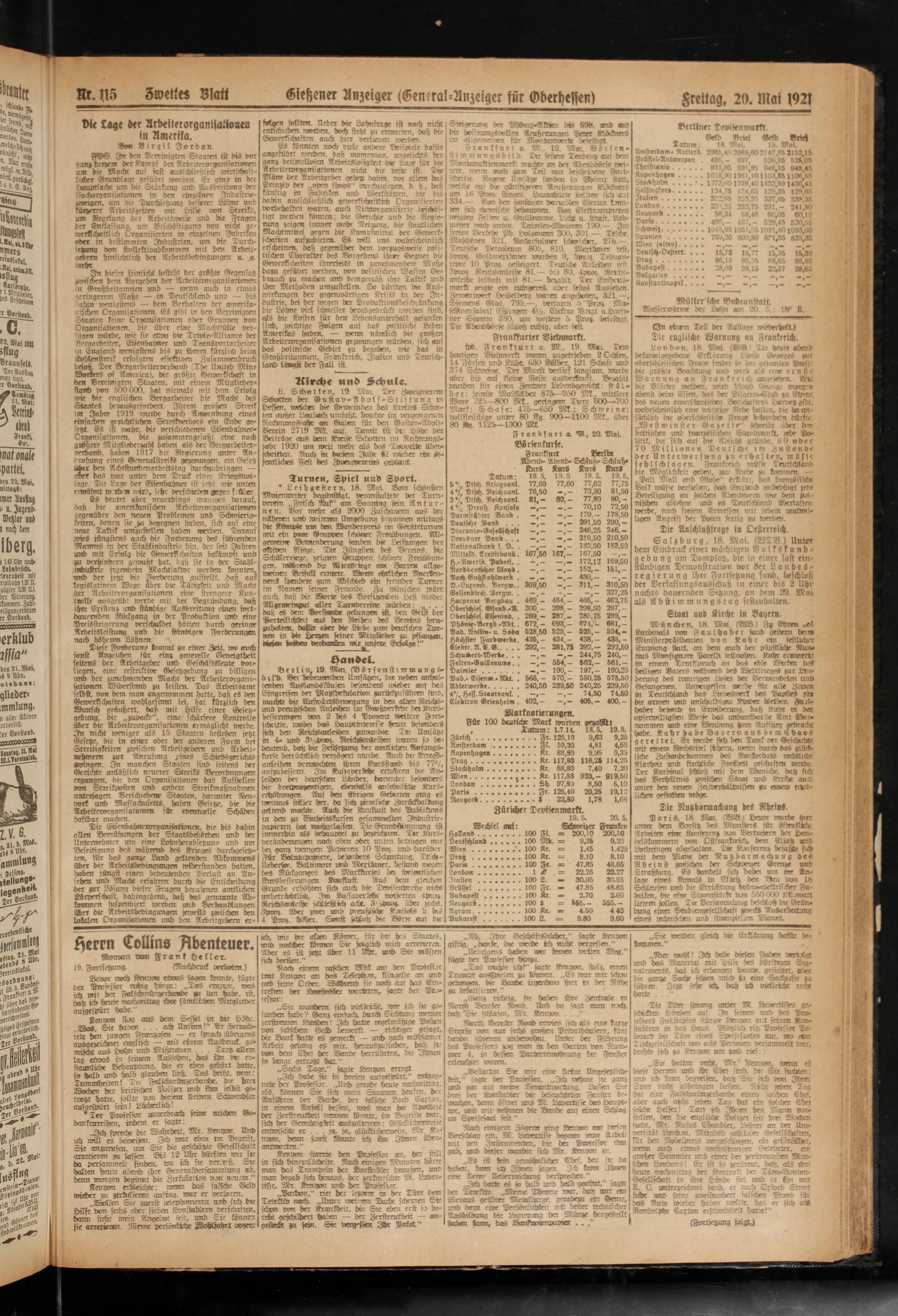 Aveiter Blatt Siebener Anzeiger (General-Anzeiger für Gderheffen)greltag, 20. Mai 1921