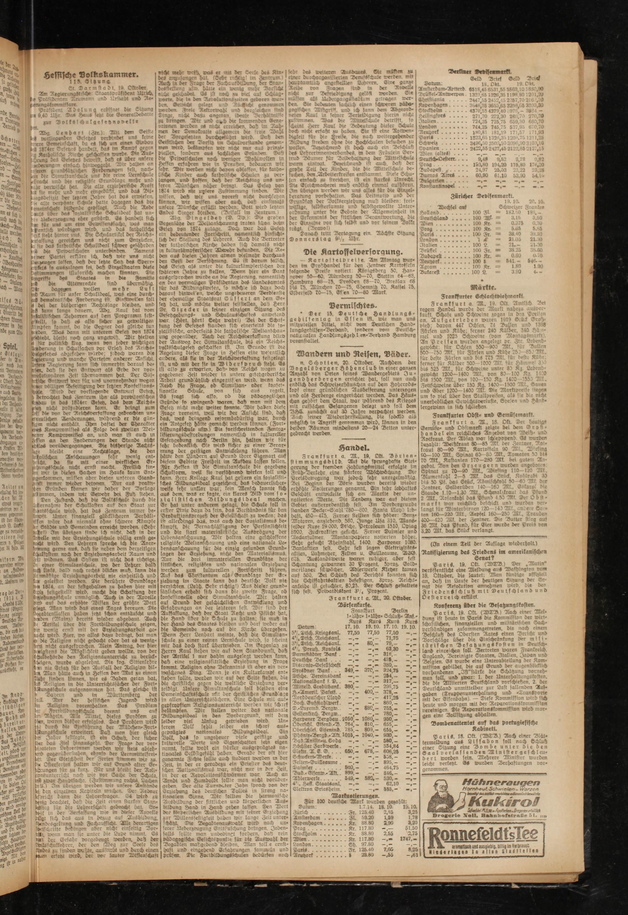 Frankfurt a. M.» 20. Oktober.