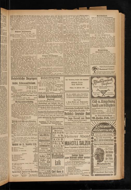 Wdbe beim Kerldben von M H rtne Jhib wild und srnang ins frelh Ein Mann, der das Ti r leftbdten to llte, wurde umgetannt unb verletzt Erst bei oen*. Torte Roth gelang es, die früh nach einer jhrt stündigen Jagd durch Serien mit doUNöhen ;u sfall tu bringen unb sest^u halten — In Sichertshausen rntwenbeten am Sonntag vwei junge Leute au- Thüringen zwei Xabrrdbrr Ter ein? von ihnen wurde in Nol i hiusen unb or. (mb-re in Rotd von den Toriburfdxn tiftaebalten. — Am Sonntag hat sich in M a r b u r aite Bereinigung g-grünbet, die alle ehemaligen Marburger ILOec in ganz Teutschland umfasse nioll.